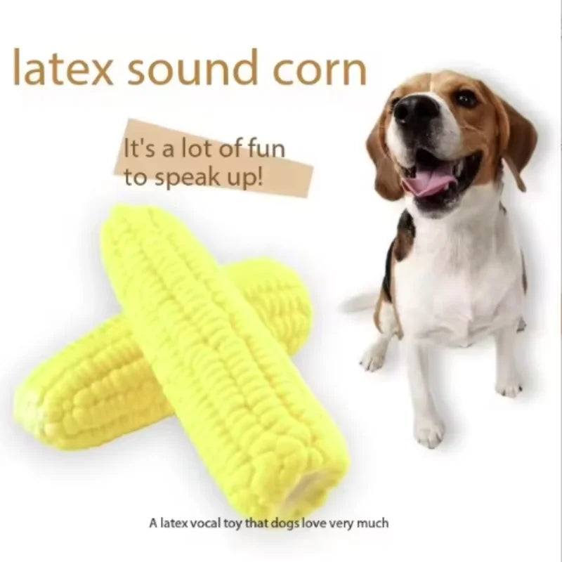 Corn Shape Puppy Dog Toy Latex Squeak Interactive Chew Bite-Resistant Trainin...