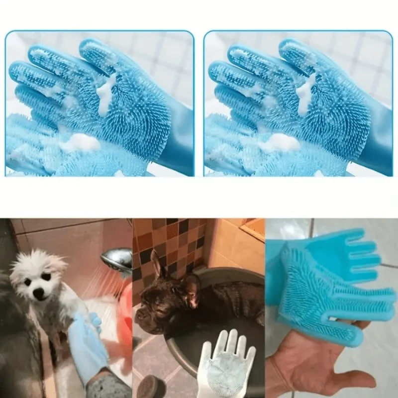 Pet Grooming Cleaning Gloves Dog Cat Bathing Shampoo Glove Scrubber Magic Dis...