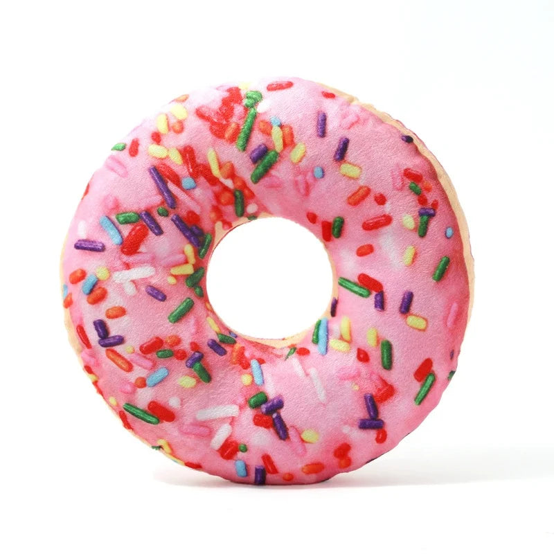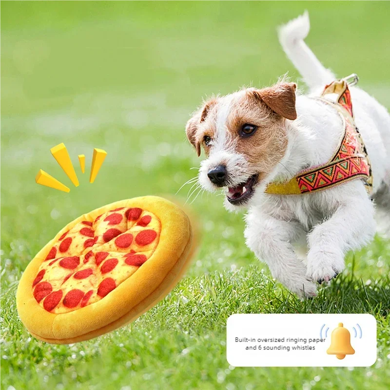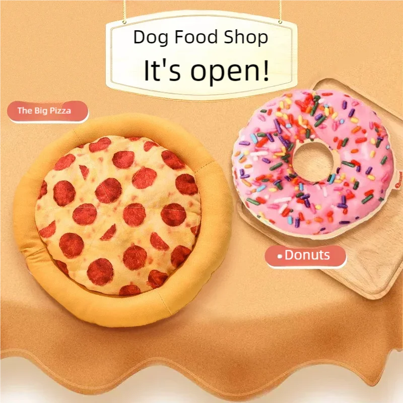 Plush Dog Toy Doughnut Pizza Shape Pet Squeaky Toys for Small Large Dogs Clea...