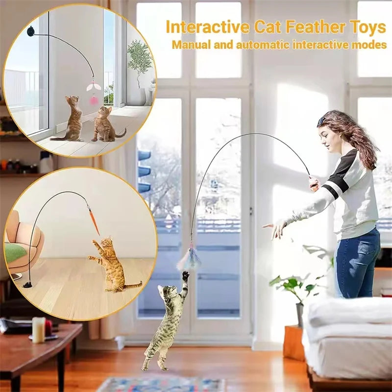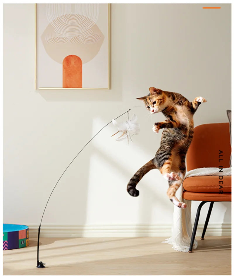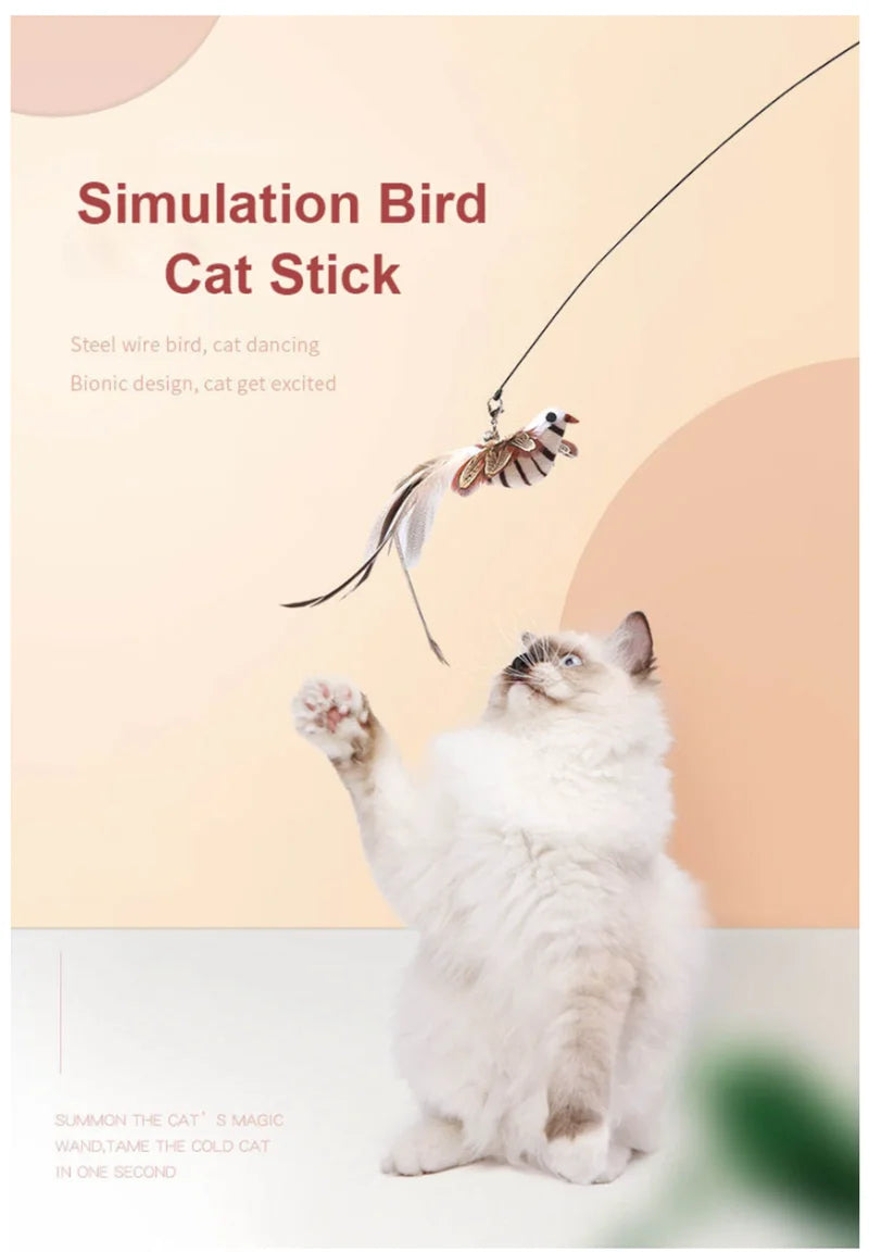 Simulation Bird Interactive Funny Cat Stick Toy Furry Feather Bird With Bell ...