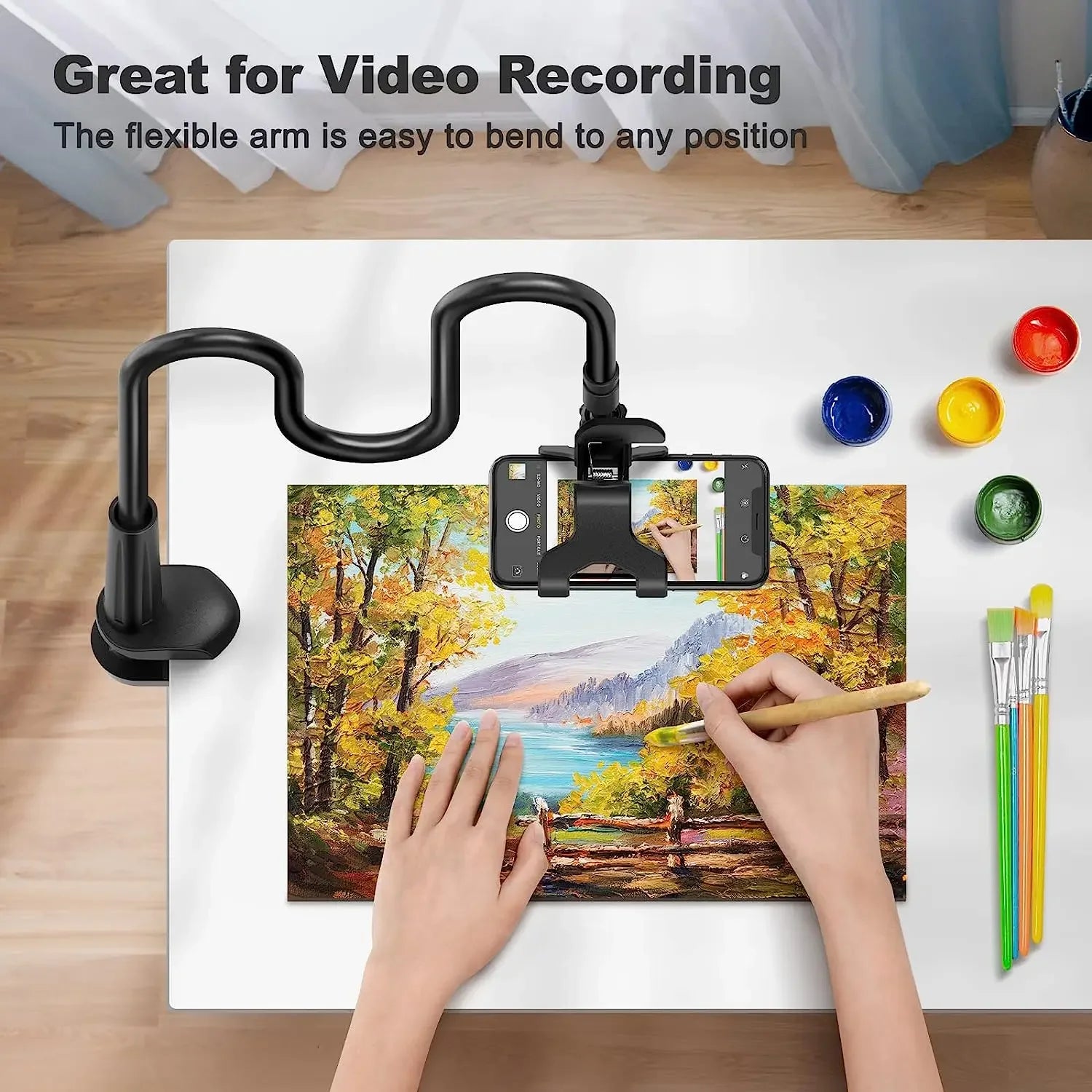 【Upgraded Version】- The arm of our gooseneck bed holder adopts better materials and design. It has improvements in both stability and durability. With 31.5 inches (80cm) long arm, high- quality Aluminum-magnesium alloy solid core makes the lazy arm sturdy enough to hold his phone firmly, yet flexible to bend in any direction to accommodate your view.