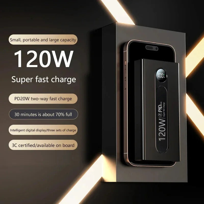 20000mAh Power Bank 120W Super Fast Charging Battery High Capacity Digital Display Power Bank For Iphone Samsung Xiaomi Huawei