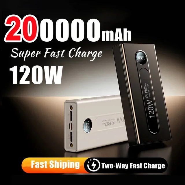 High Capacity Power Bank 200000mAh Digital Display Powerbank 120W Super Fast Charging Battery For Iphone ...