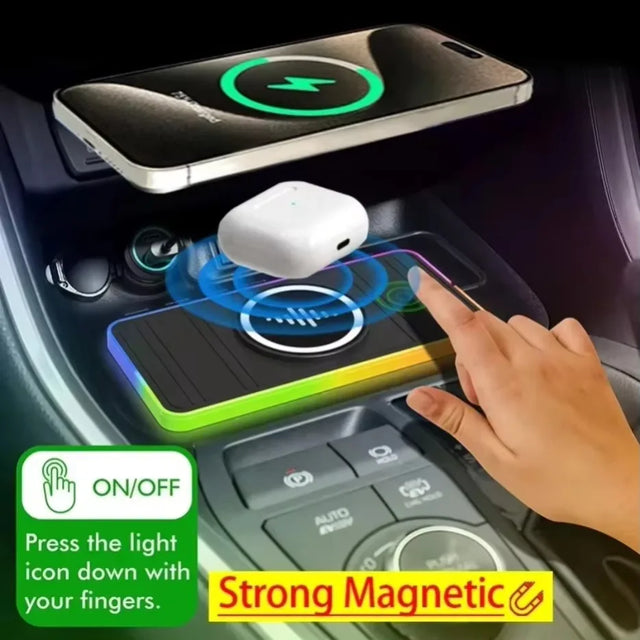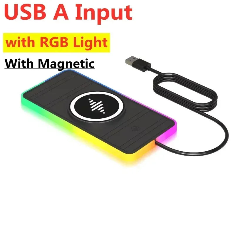 Slim and Cool Design: Upgraded with RGB Light and with switch,Lightweight,sleek,compact design with non-slip rubber. This wireless charging pad is just 6mm/0.23inch super slim and takes up very little space make it easier to put it in pockets, a high speed wireless power charging pad can be easily carried during travel or business,This charger feels solid and looks great no matter using it in the car office or at home.