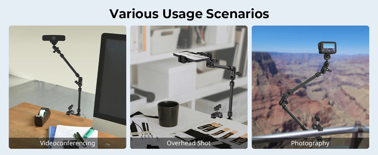 Features 1: Desktop Shooting Magic Arm with Crab Clamp Kit