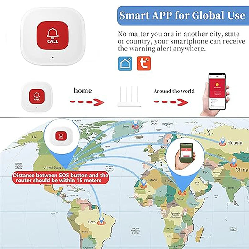 TUYA WiFi Emergency Call Button Smart SOS Caregiver Pager Phone Alert Transmitter Emergency Call Button f...