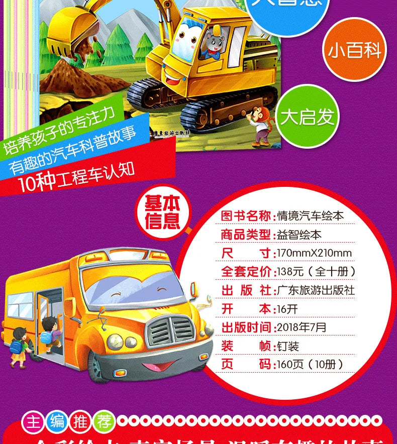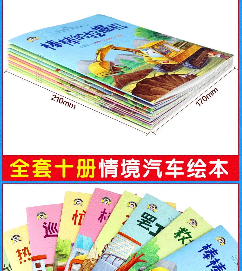 10pcs Tool Car Manga Book Chinese Characters Pinyin Kindergarten Early Education