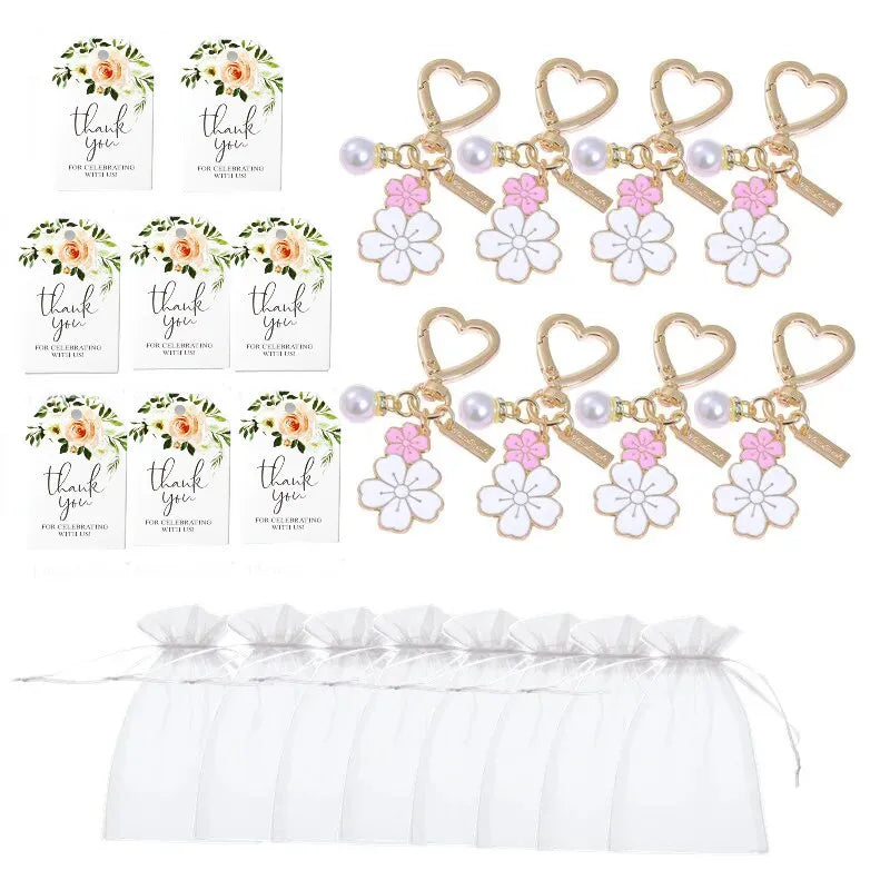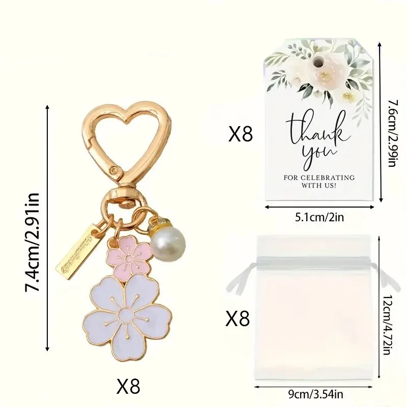 24pcs 8 Sets Bridesmaid Gift Flower Heart Keychain With Thank You Cards And