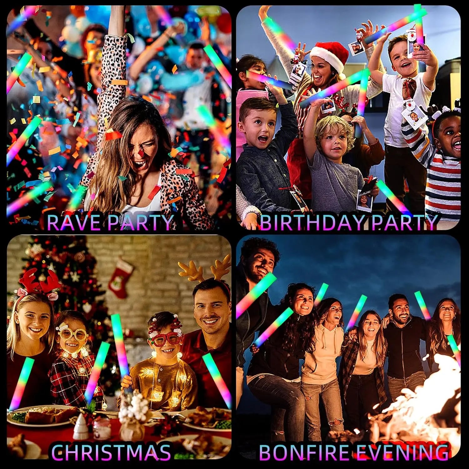 Glow Sticks Bulk ,16-inch giant foam glow sticks are larger in size and feel better in the hand. Our giant LED foam glow sticks are brightly colored, provide wider light coverage, and best of all, they will bring the ultimate experience to your party., Giant Foam Glow Sticks with 3 Modes Colorful Flashing, Neon Party Favors, Glow in The Dark Party Supplies for Wedding, Raves, Concert, Camping, New Year, Carnival