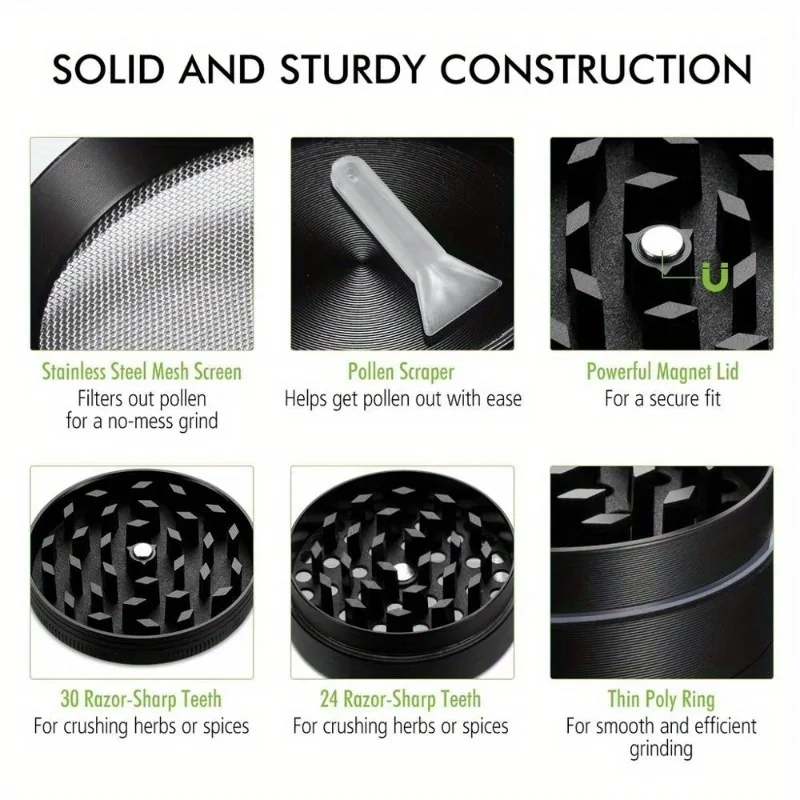Our Herb grinder ensures incredible closure with the strong magnetic lid. Effectively prevent the lid from falling off easily while you are grinding.