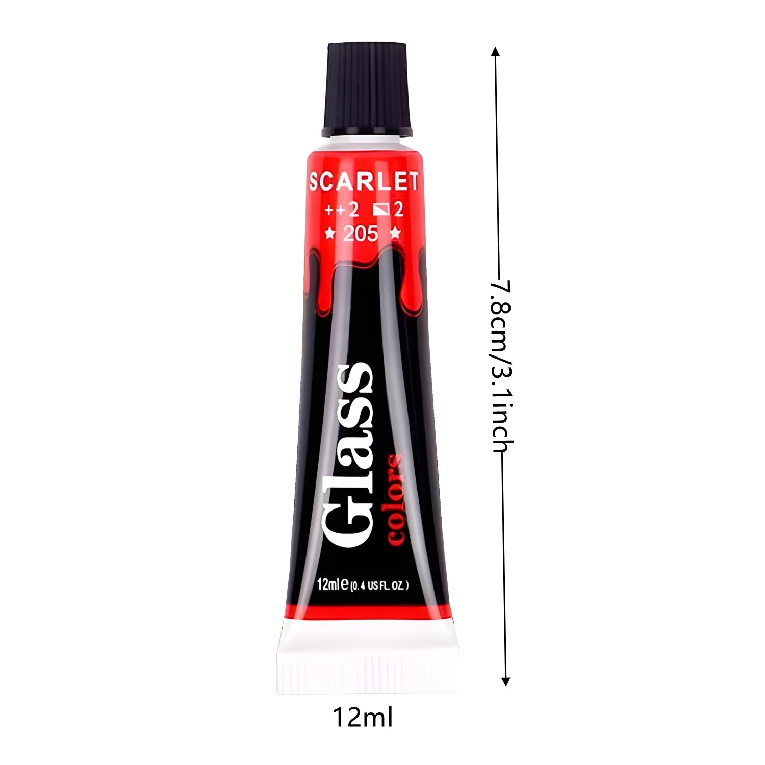 Acrylic Glass Paint Set with 6 Brushes, 1 Palette, 12 24 Colors 12ml, Stain