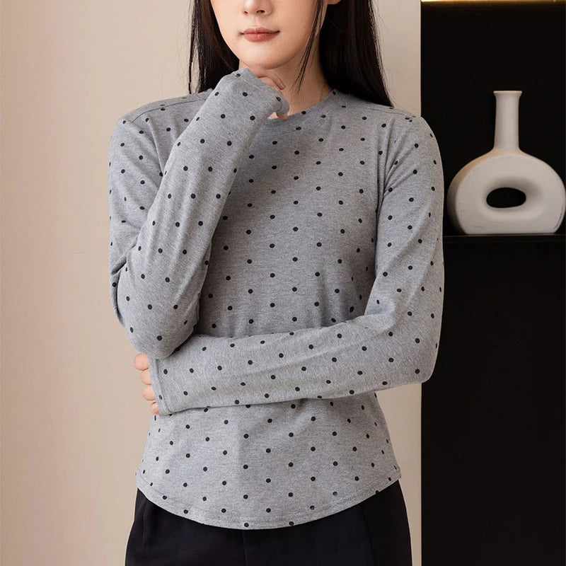 American Vintage Polka Dot Pullovers Women Spring Autumn Slim Fit Long Sleeve
