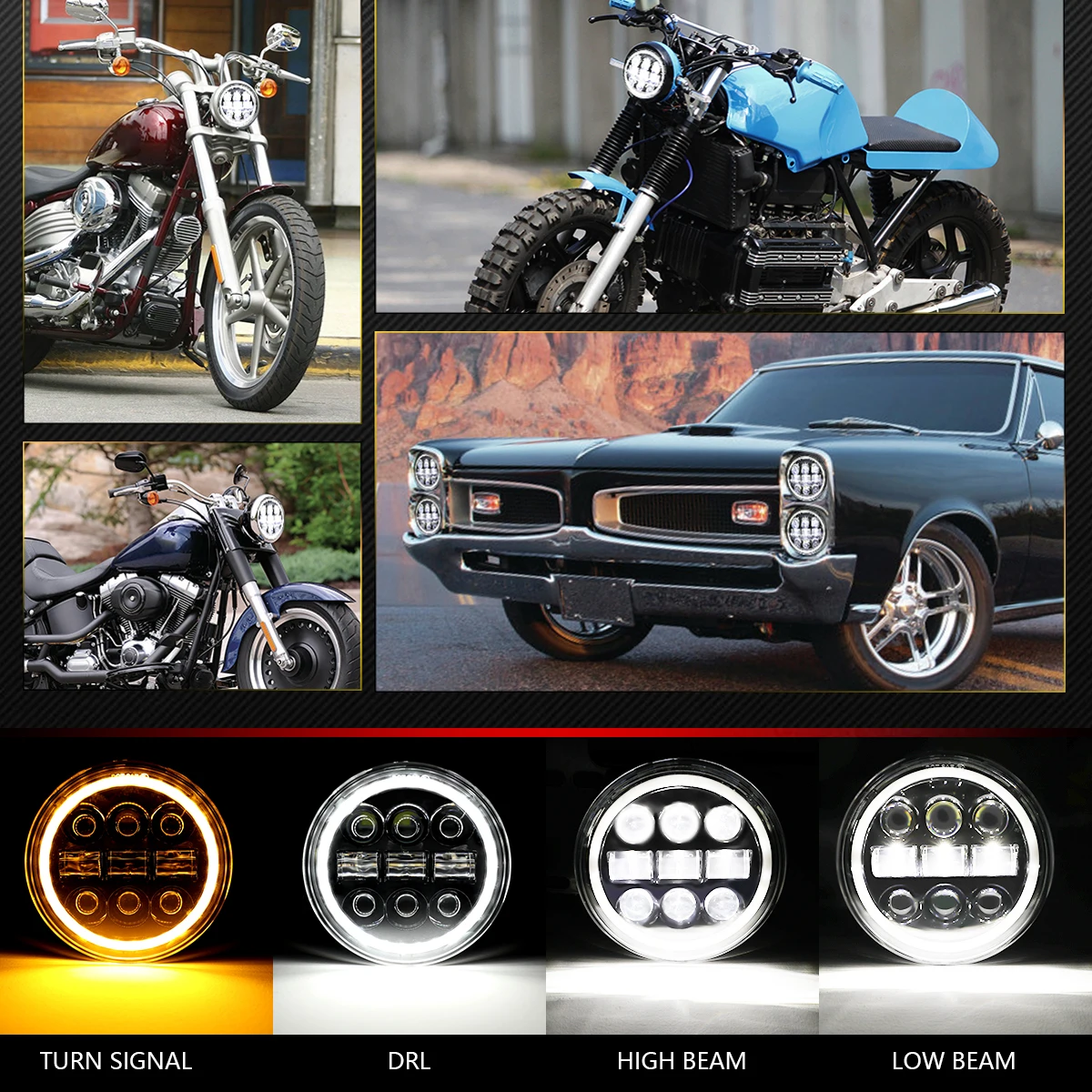 BraveWAY 5.75 inch LED Motorcycle Headlight Motorcycle, 5 3 4 Lamp For Harley
