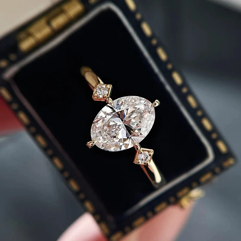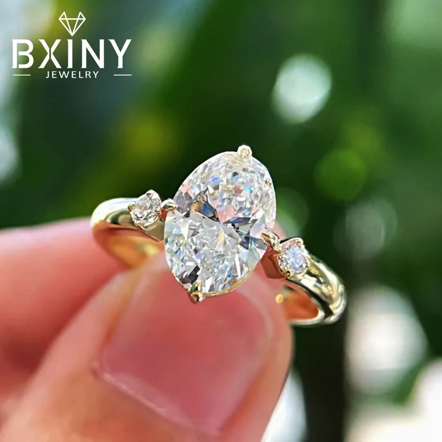BXINY GRA Certified 2CT Moissanite Ring S925 Silver D Color VVS Oval Cut Lab Diamond For Women Promise Wedding Band Fine Jewelry