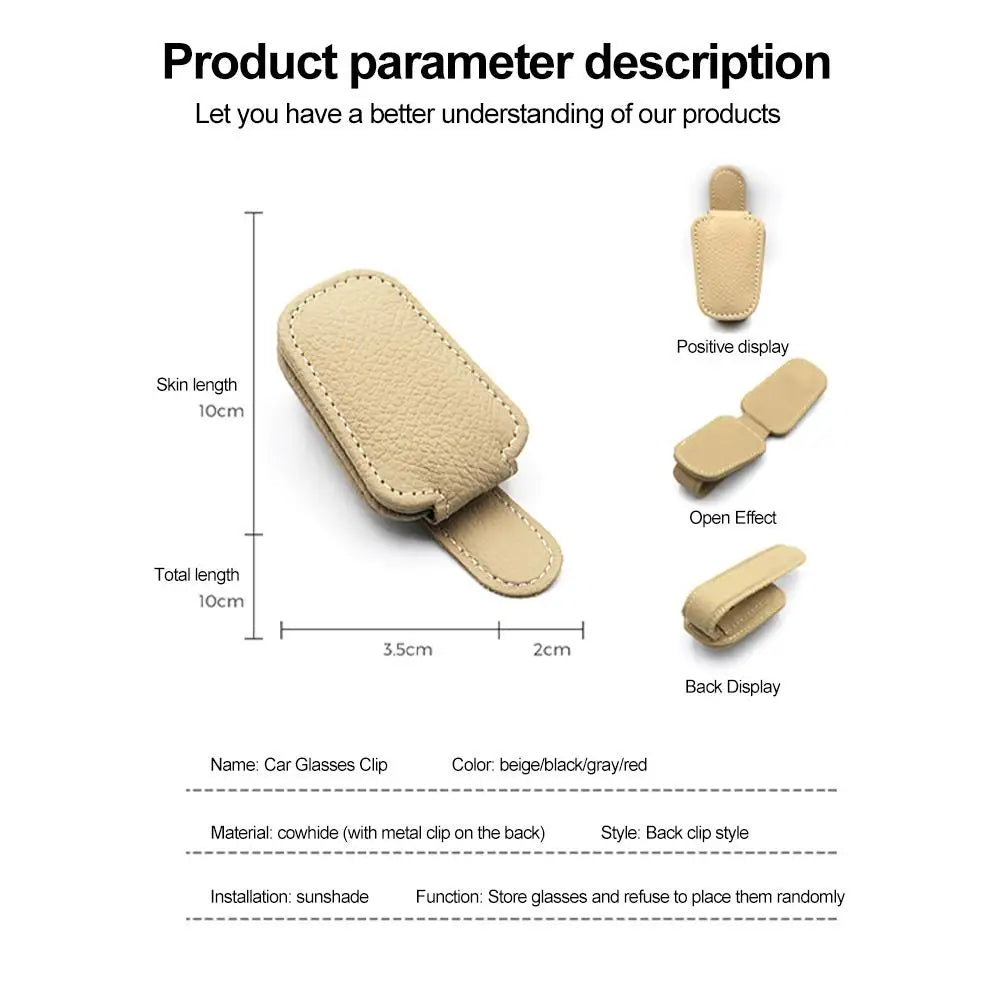 Car Sun Visor Sunglasses Clip Magnetic Cowhide Glasses Case Holder Ticket Card