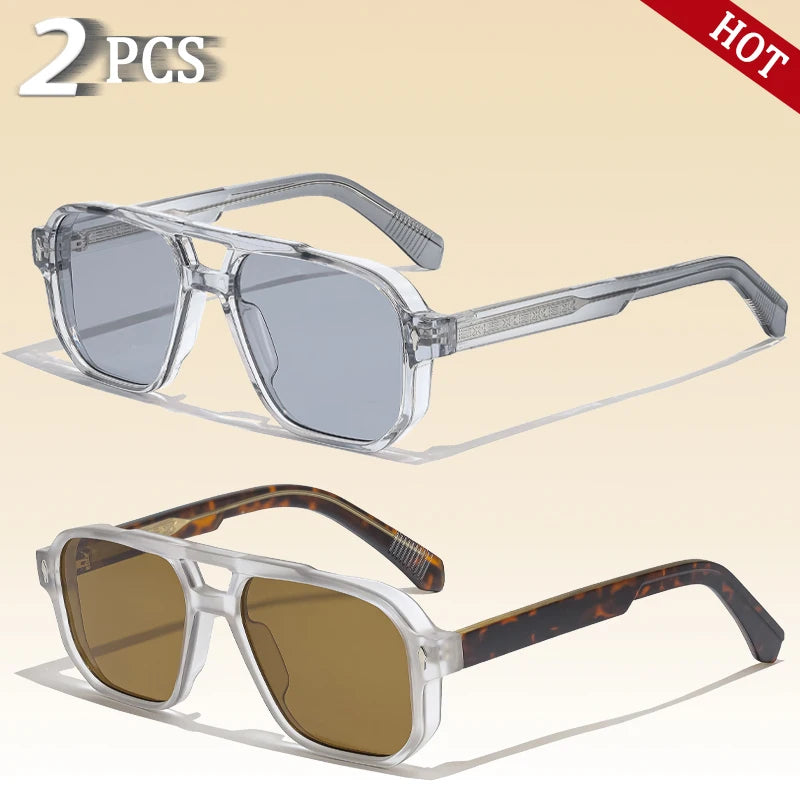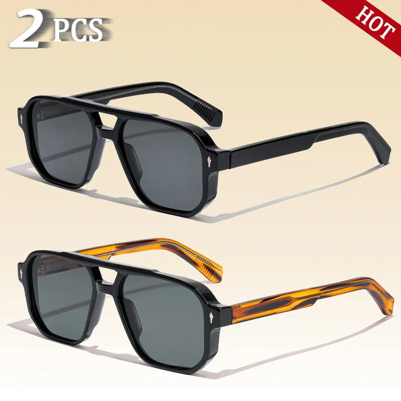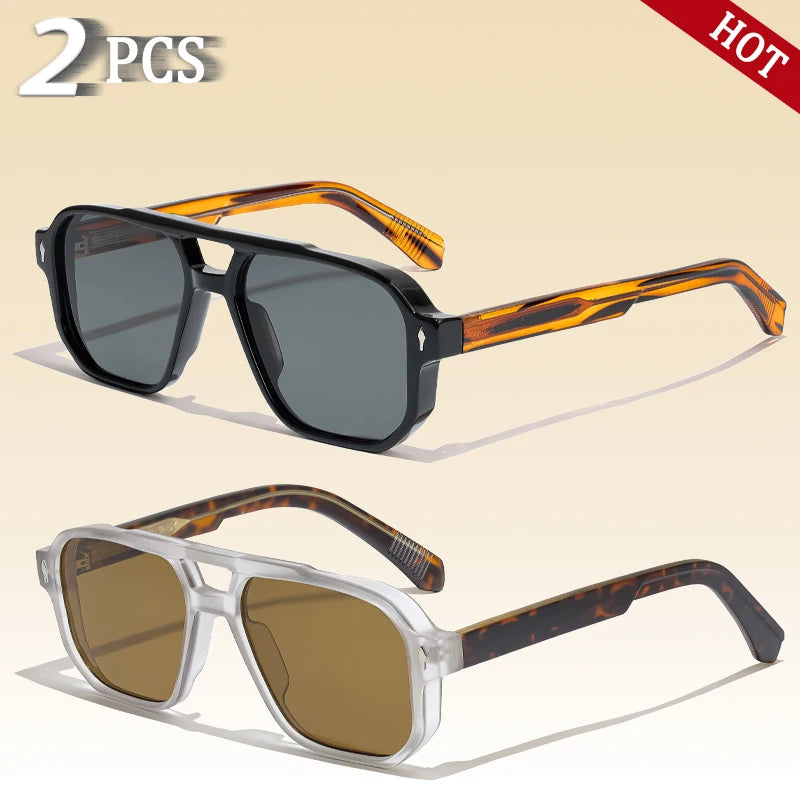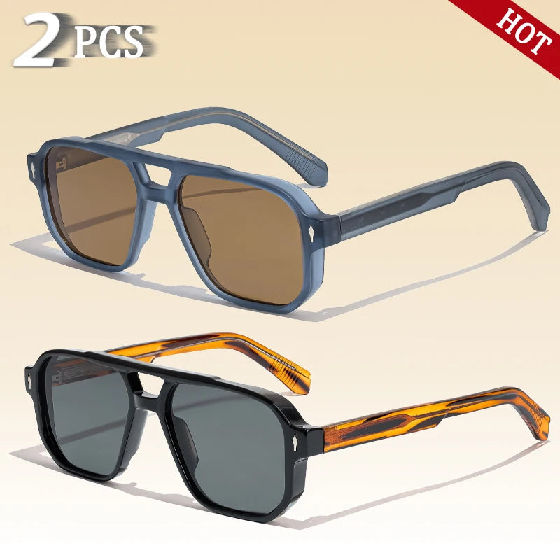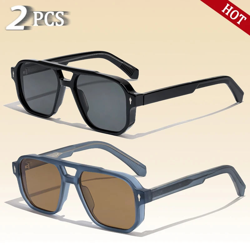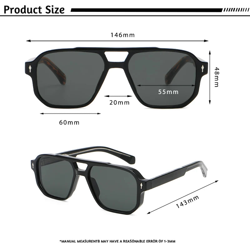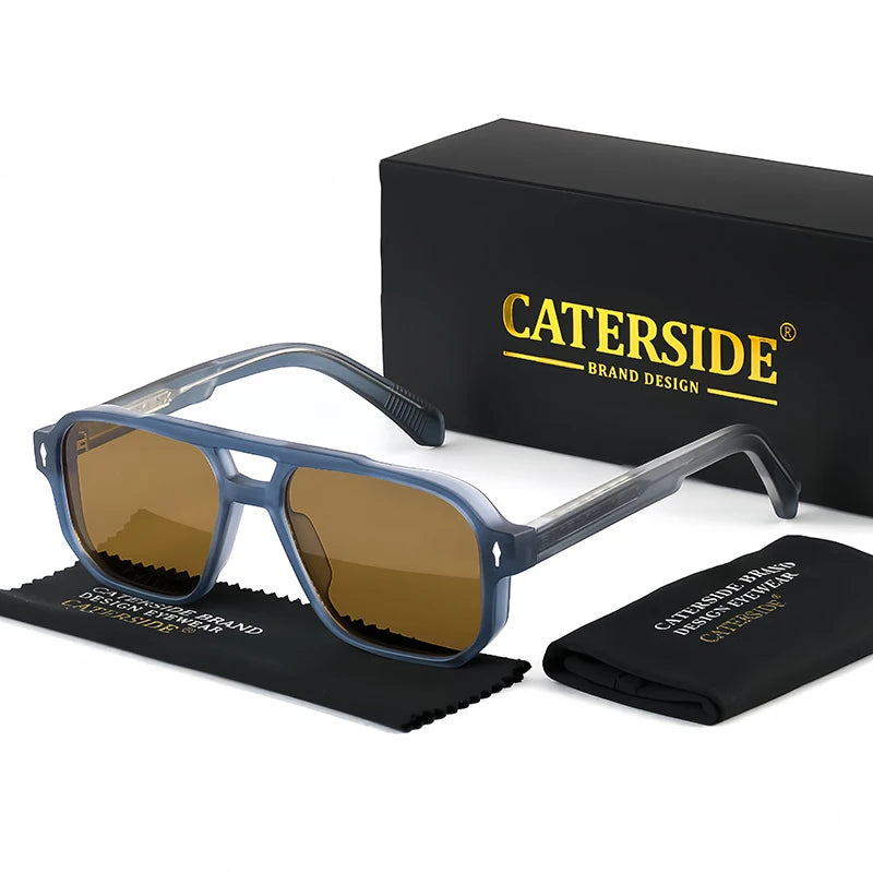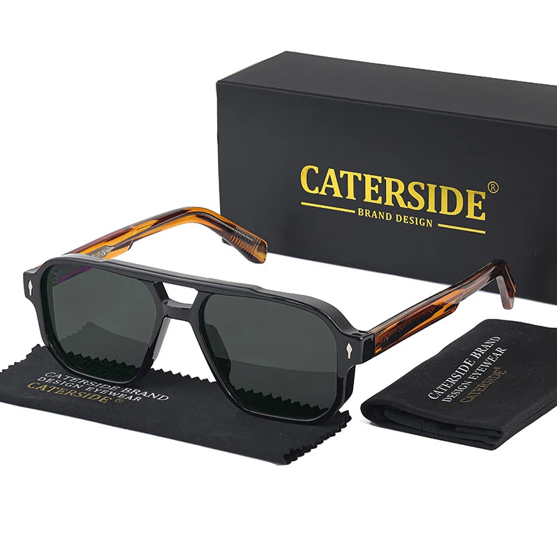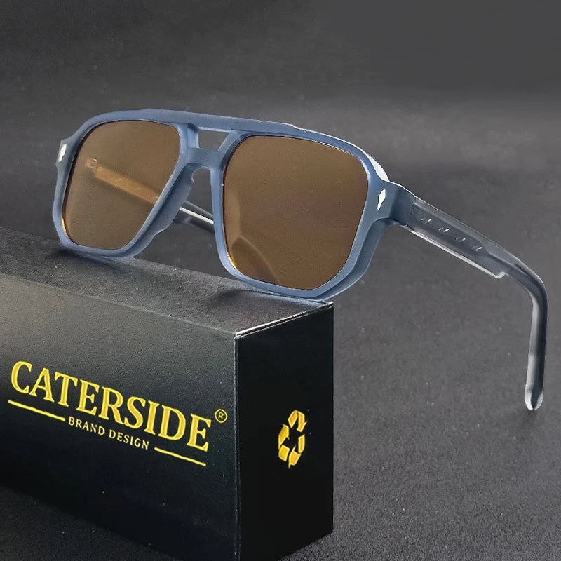 Caterside Retro Punk Sunglasses Men Vintage Flat Top Double Bridges Sun