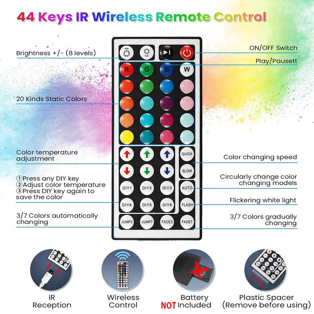 [44 KEY IR REMOTE CONTROL] Input voltage: 12V DC, Max output current: 12A, due to the shipping policy, CR2025 Battery is not included in the remote