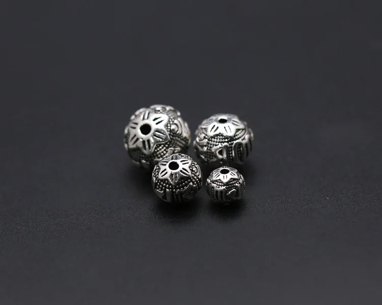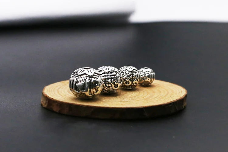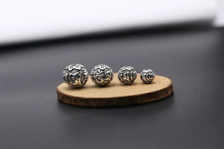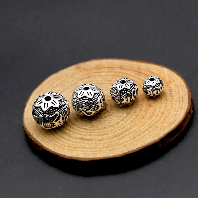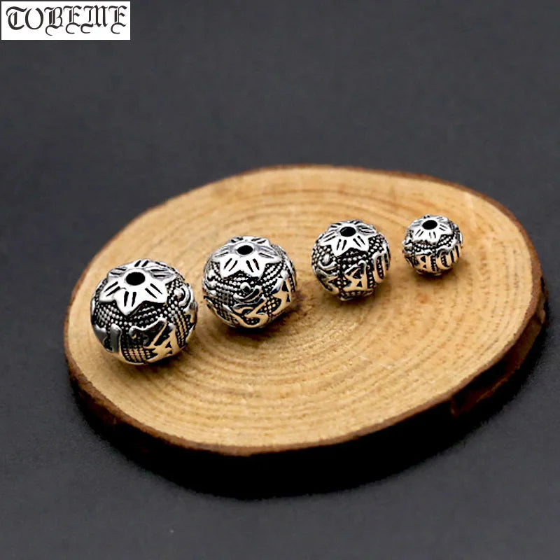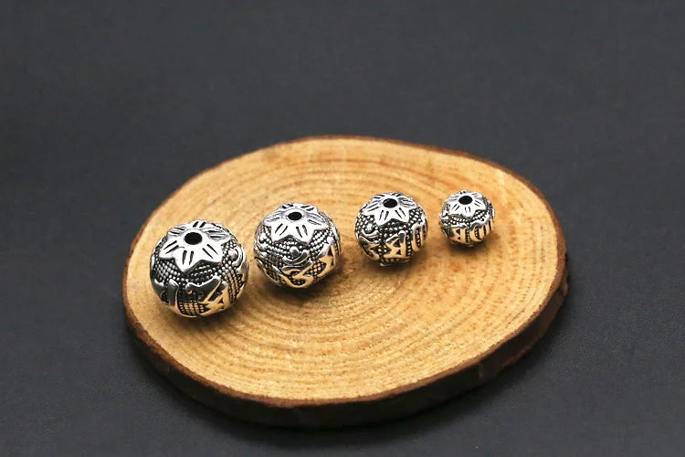 Handcrafted Vintage 925 silver om mani padme hum beads tibetan beads carved