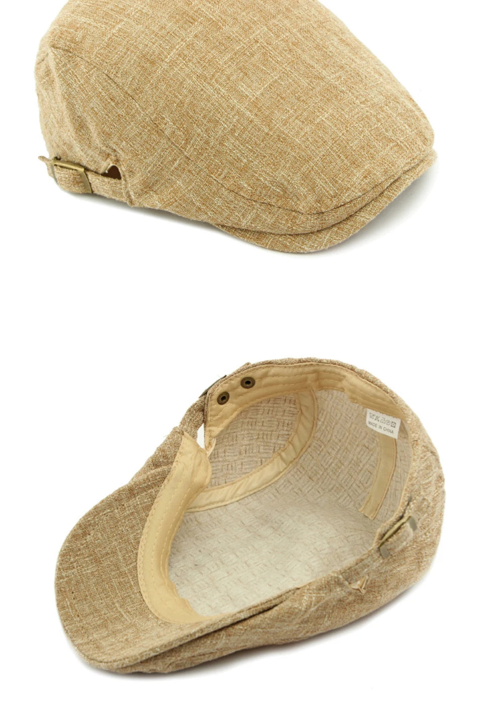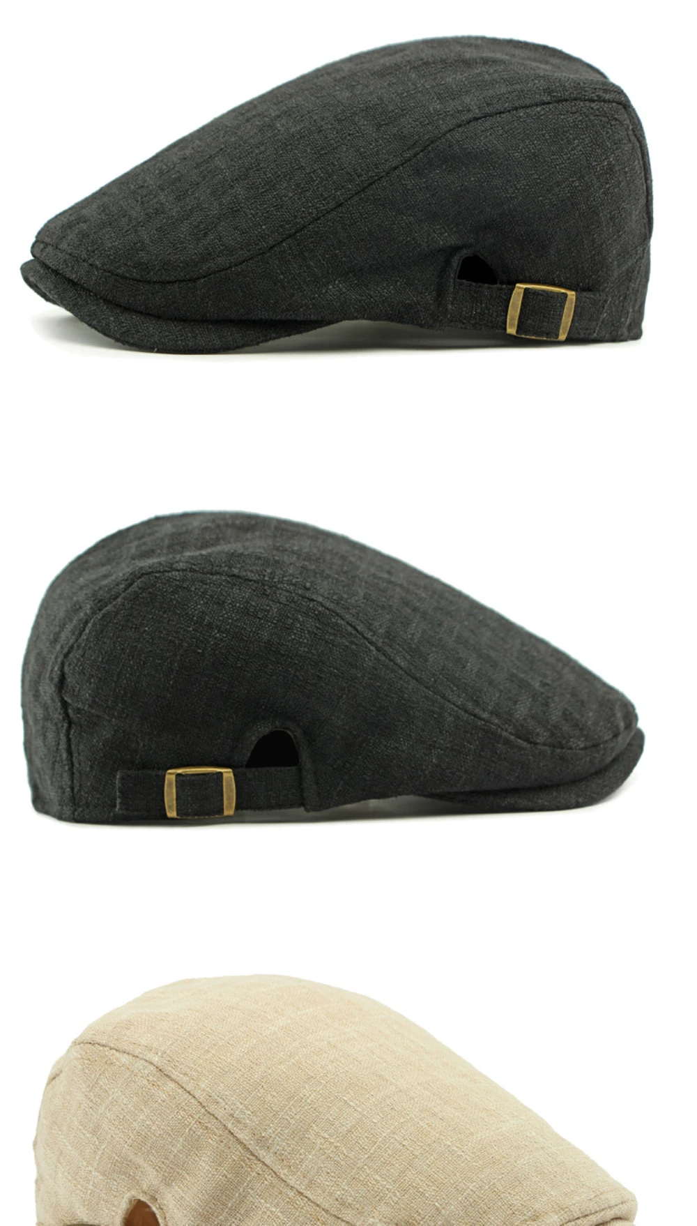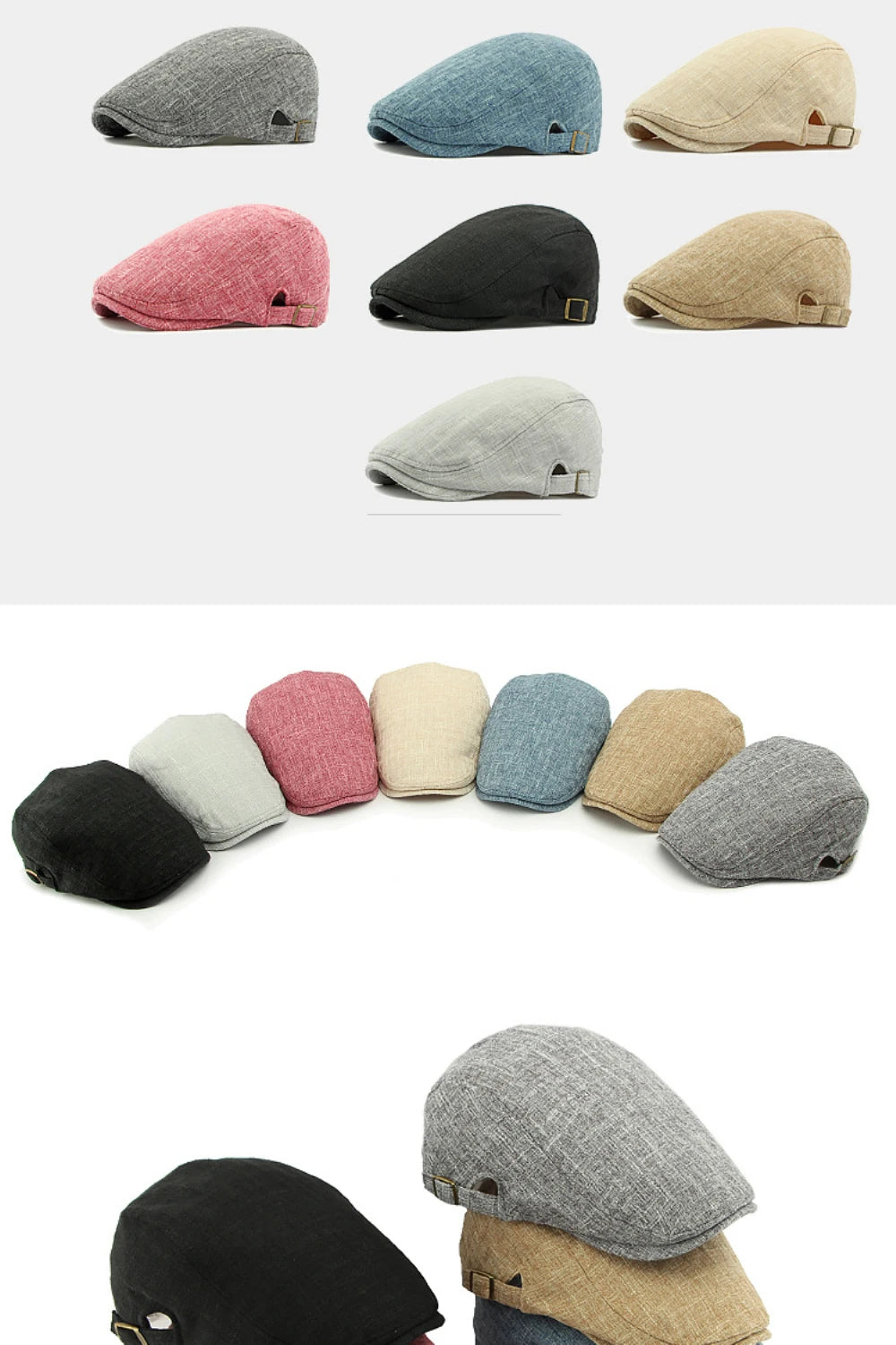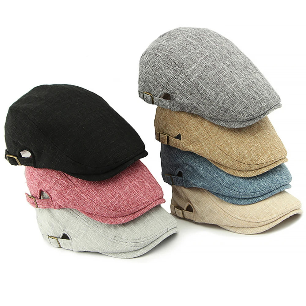 Ht4772 Men Beret Women Spring Summer Hat Breathable Linen Ivy Flat Cap Male