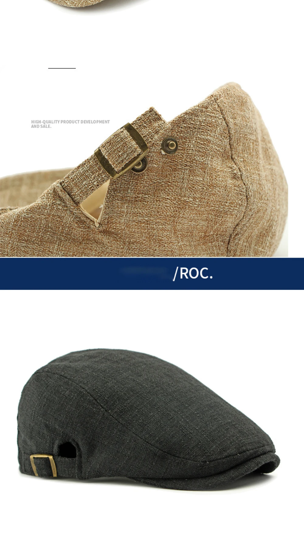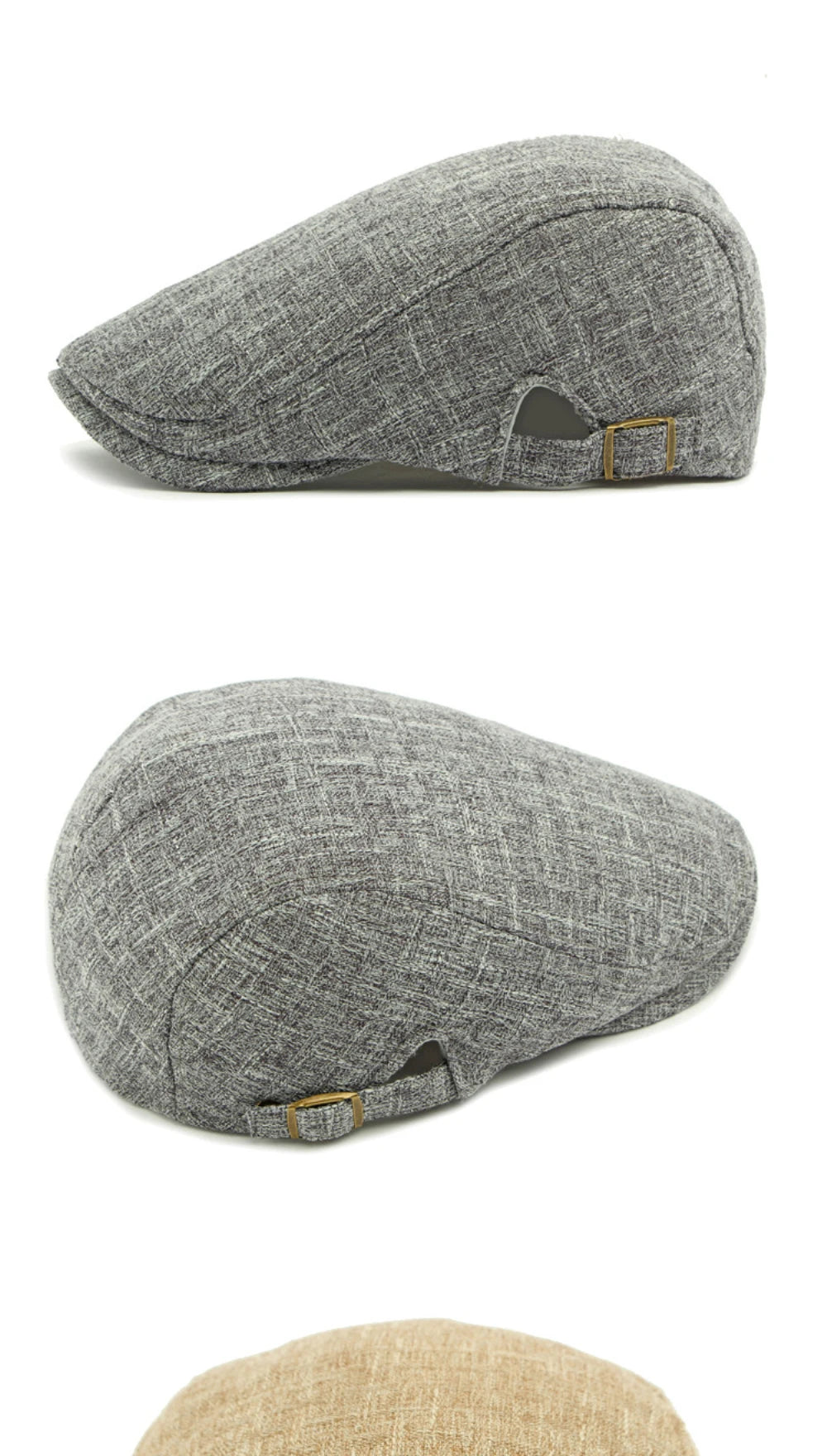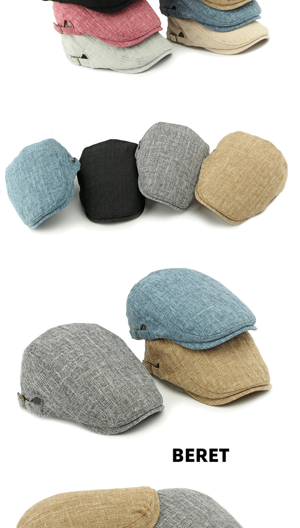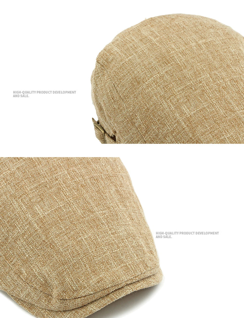 Ht4772 Men Beret Women Spring Summer Hat Breathable Linen Ivy Flat Cap Male