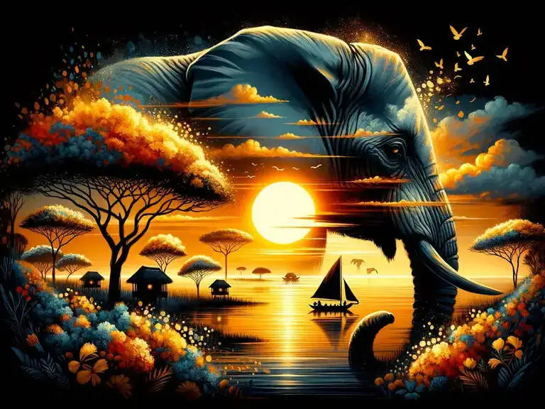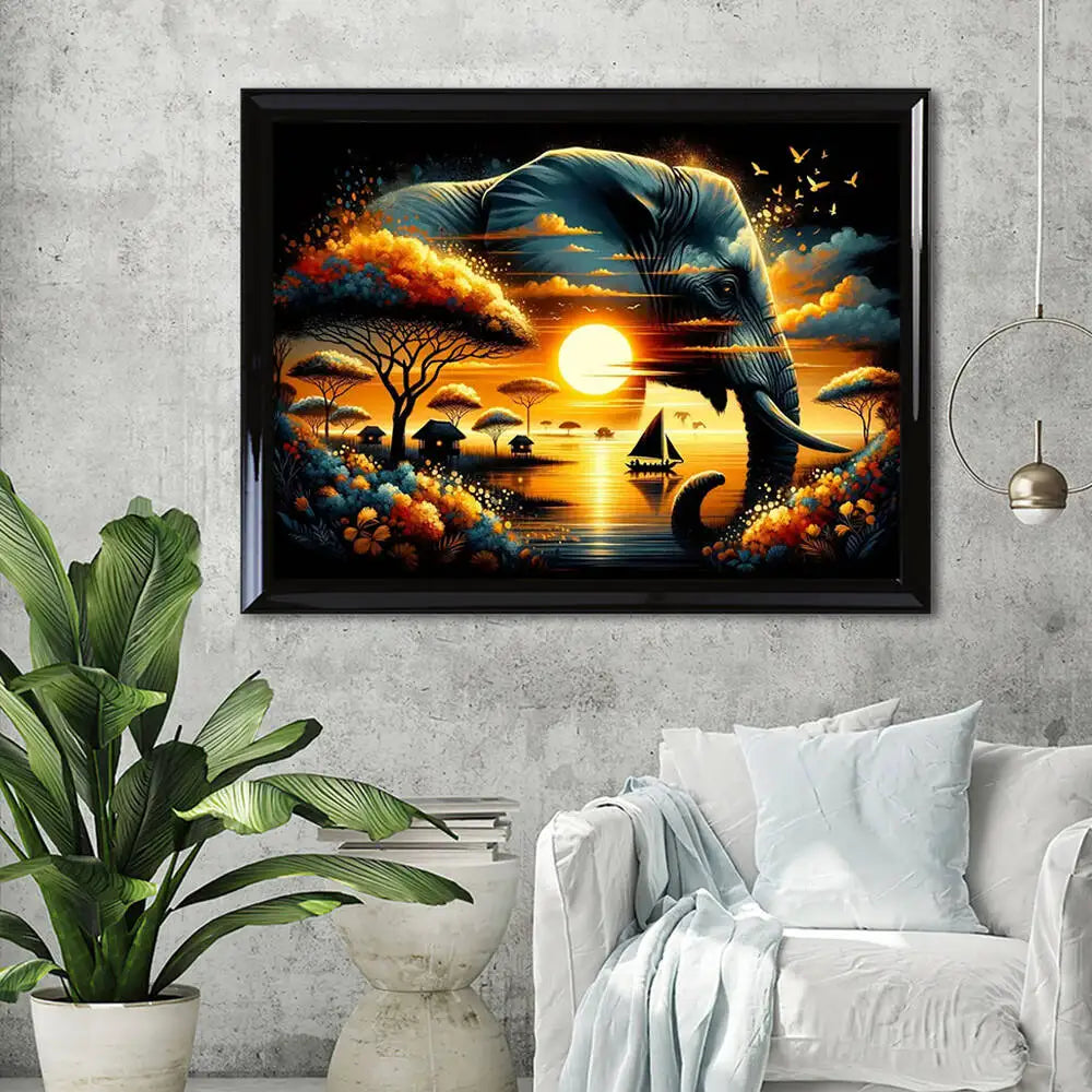• Drill Area:Full square/round diamond mosaic Elephant Animal Tree Sunset