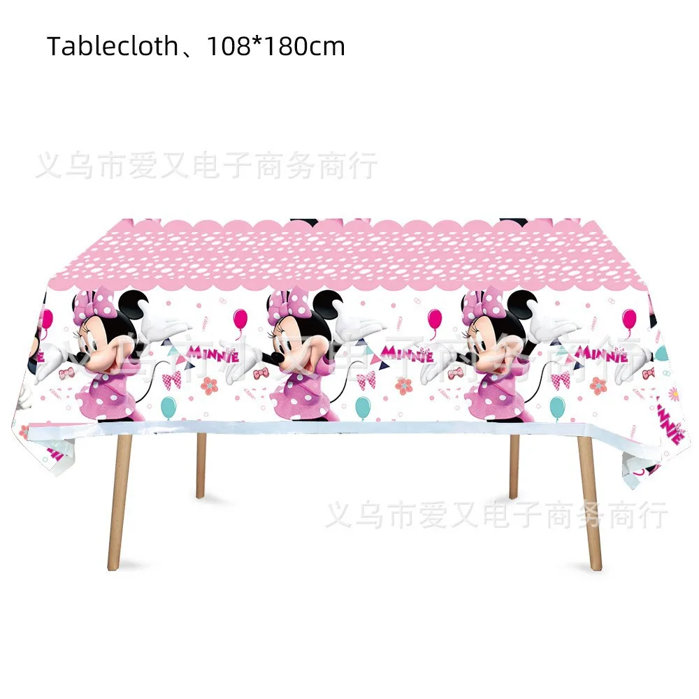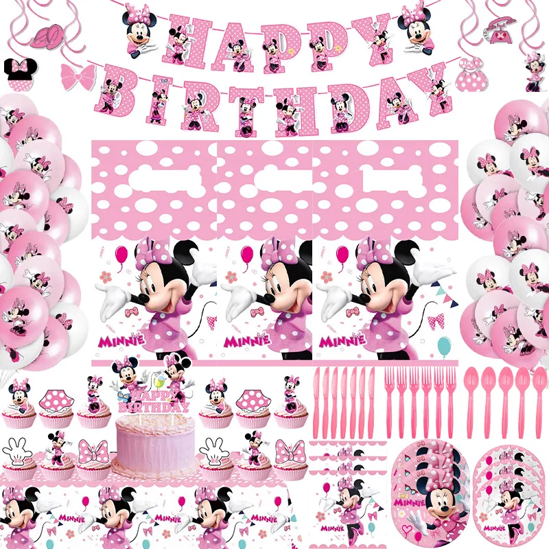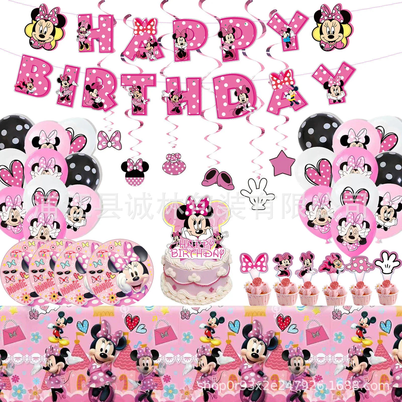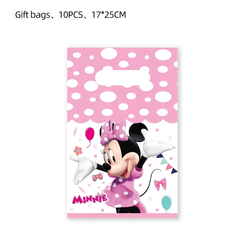 Girl Minnie Mouse Birthday Decpration Party Set Pink Minnie Balloon Gift Bag Tablecloth Tableware Plate Minine Party Supplies