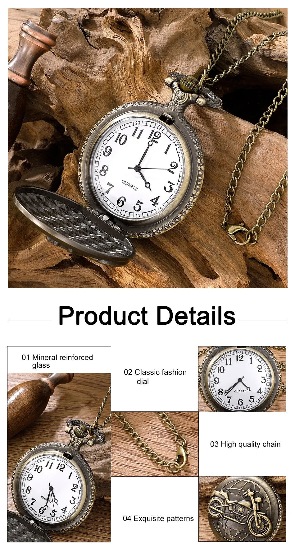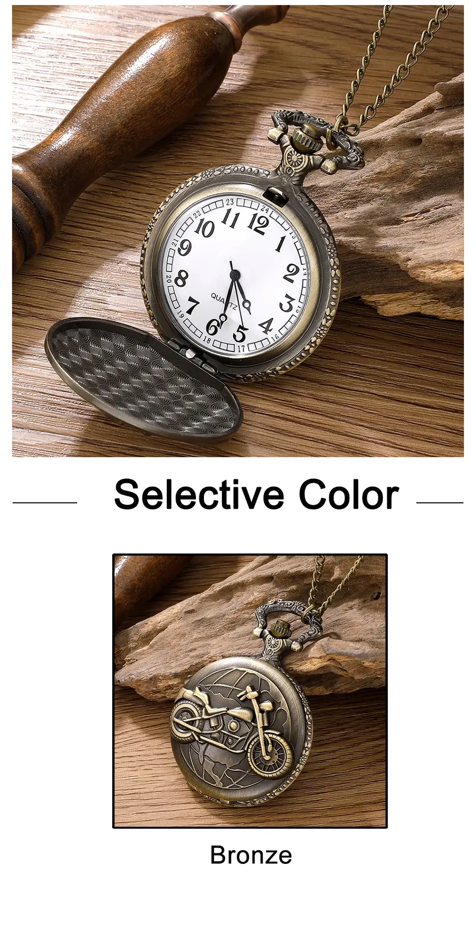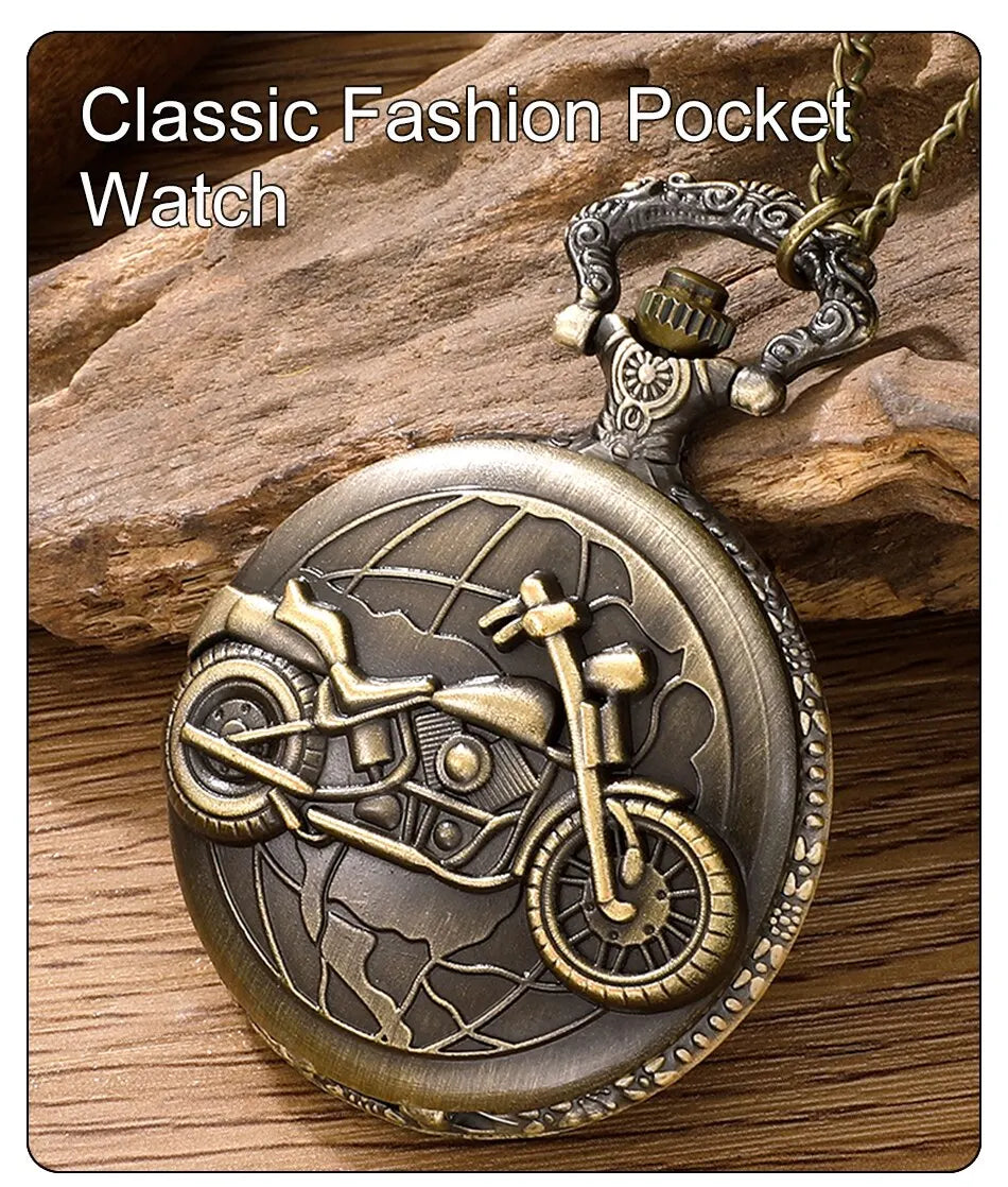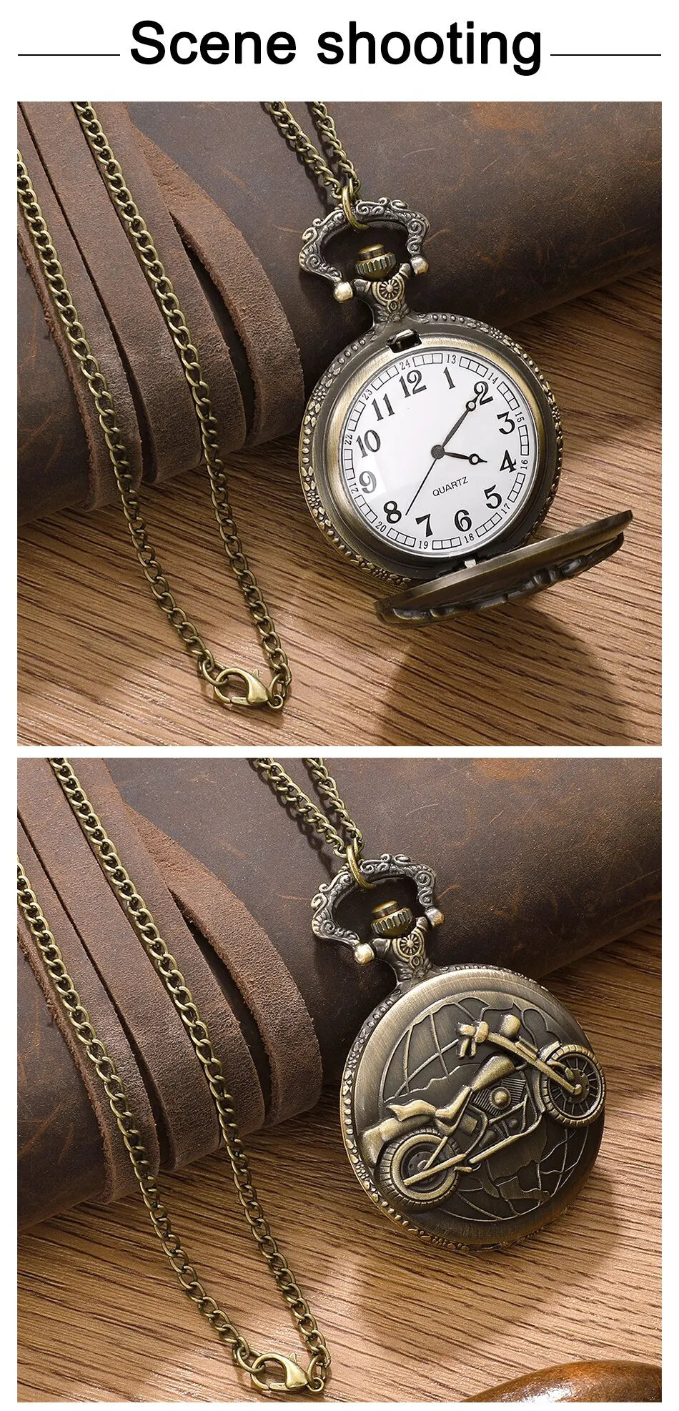 Retro Motorcycle CAR Pattern Quartz Pocket Watch Motorbike Moto Design Pendant
