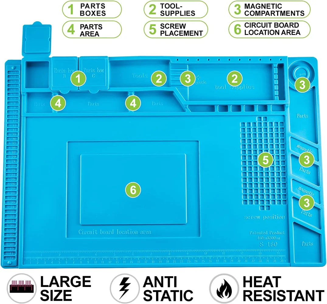 • 【ANTI-SLIP & ANTI-STATIC / EASY CLEAN】Adopt anti-slip design both of surface and back, and it is static-free making your repair work easy. Soft silicone material is very easy to clean and roll-up for convenient storage.