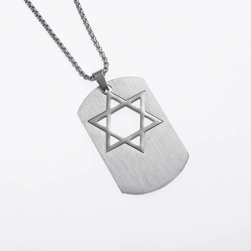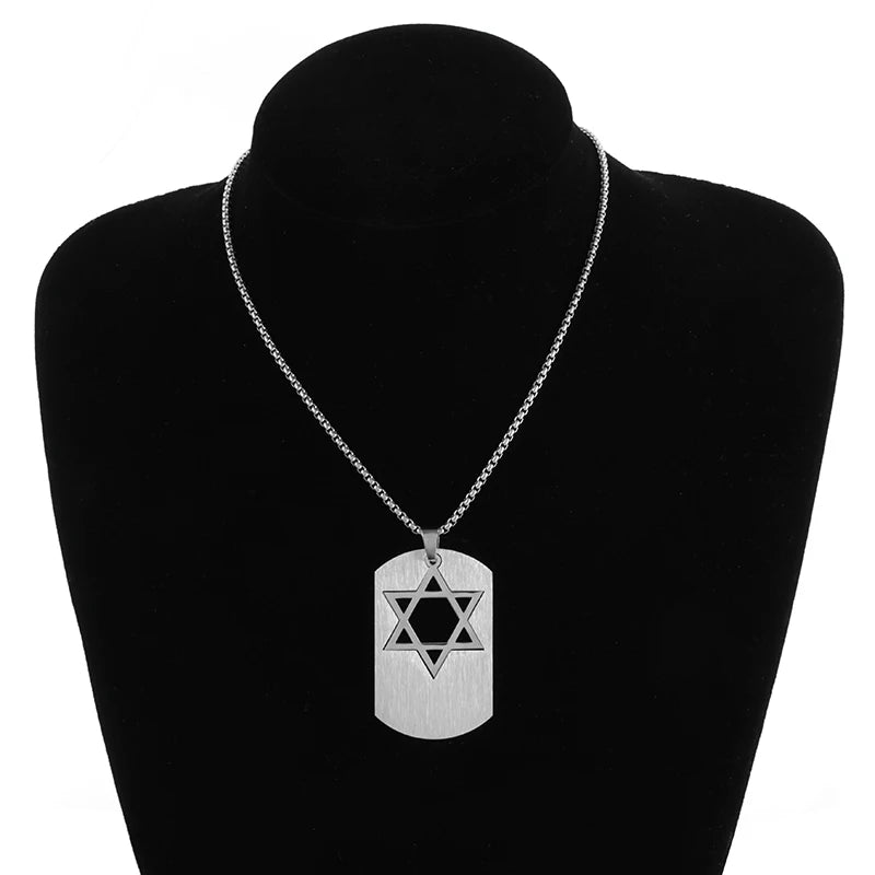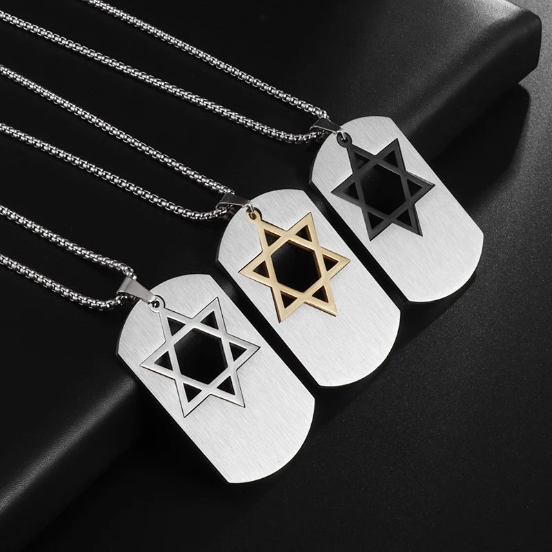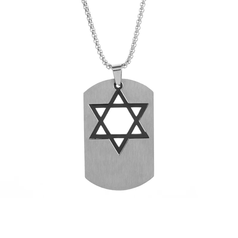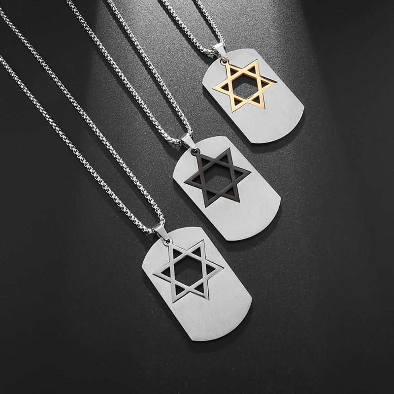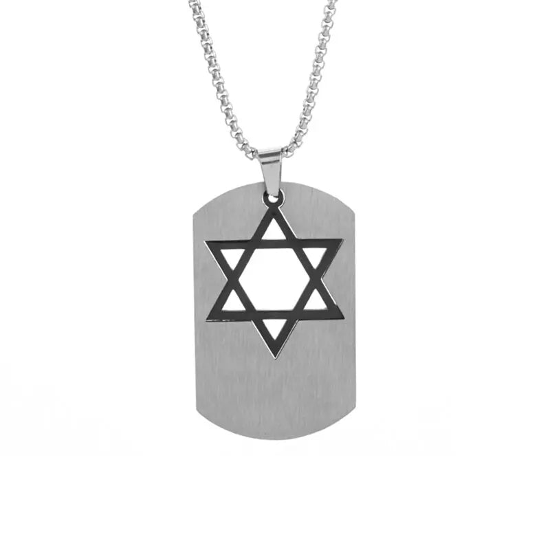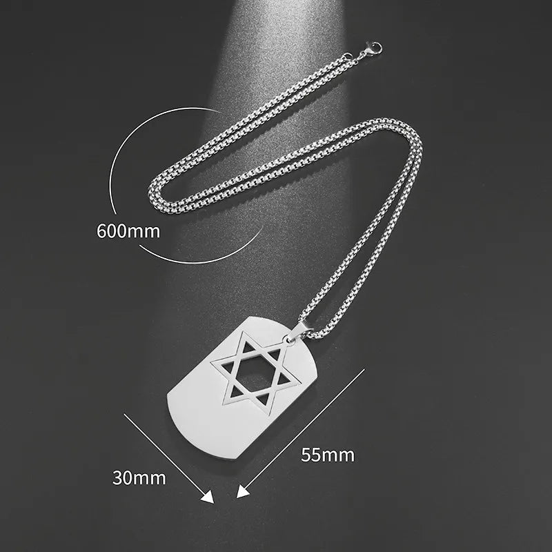 Star of David Necklace Stainless Steel Geometric Hexagon Cutout Dog Tag Pendant Judaism Men\\\\\\\'s Char...