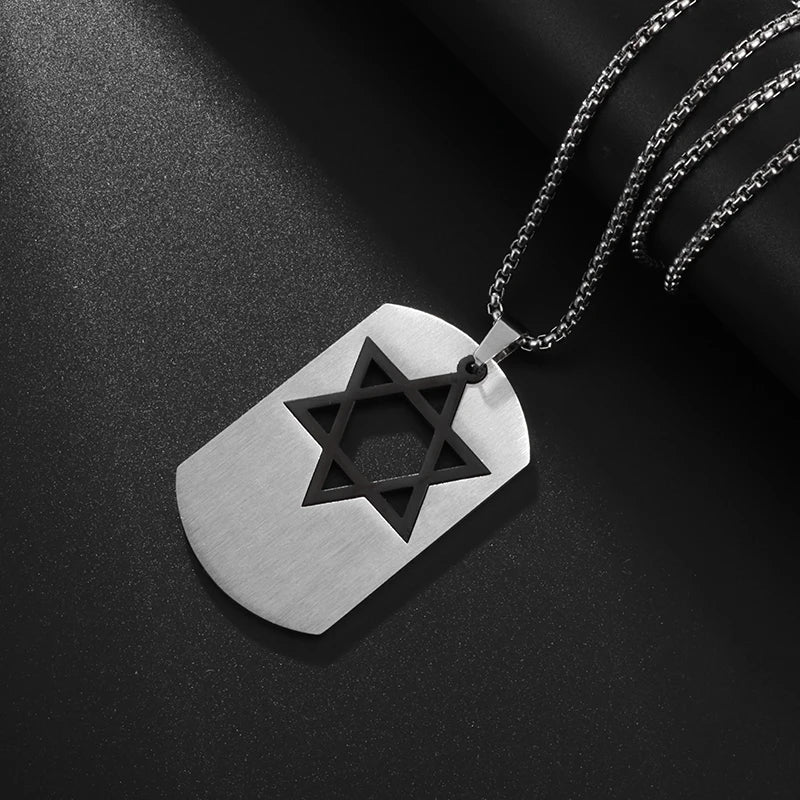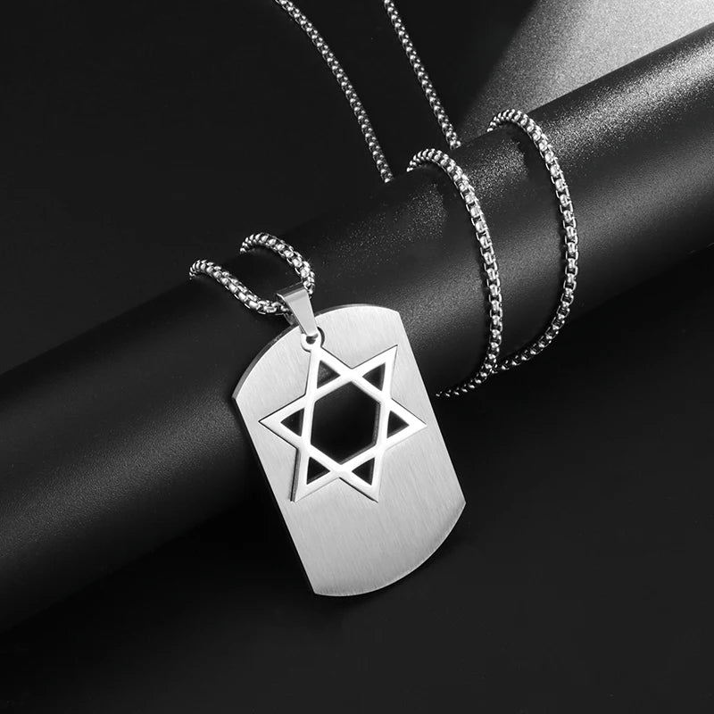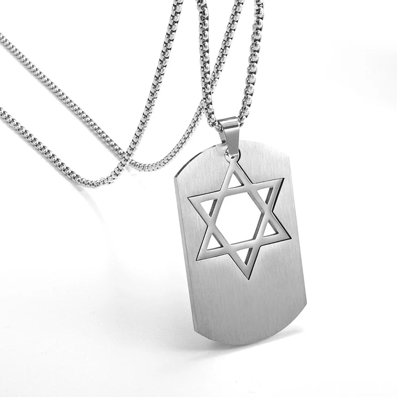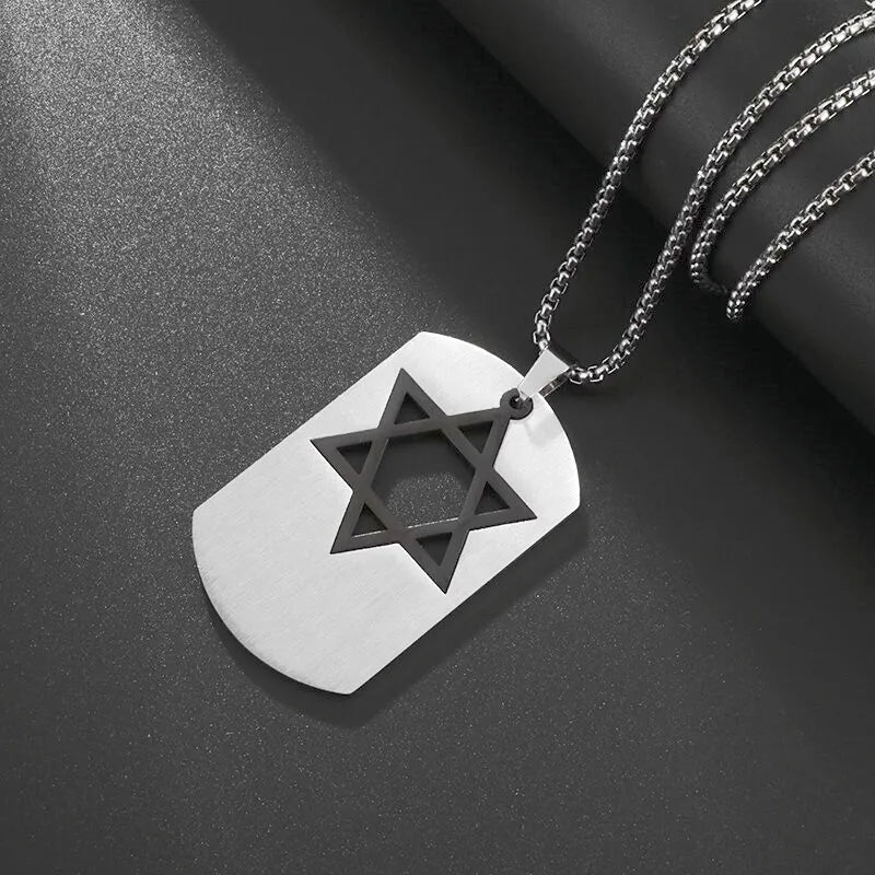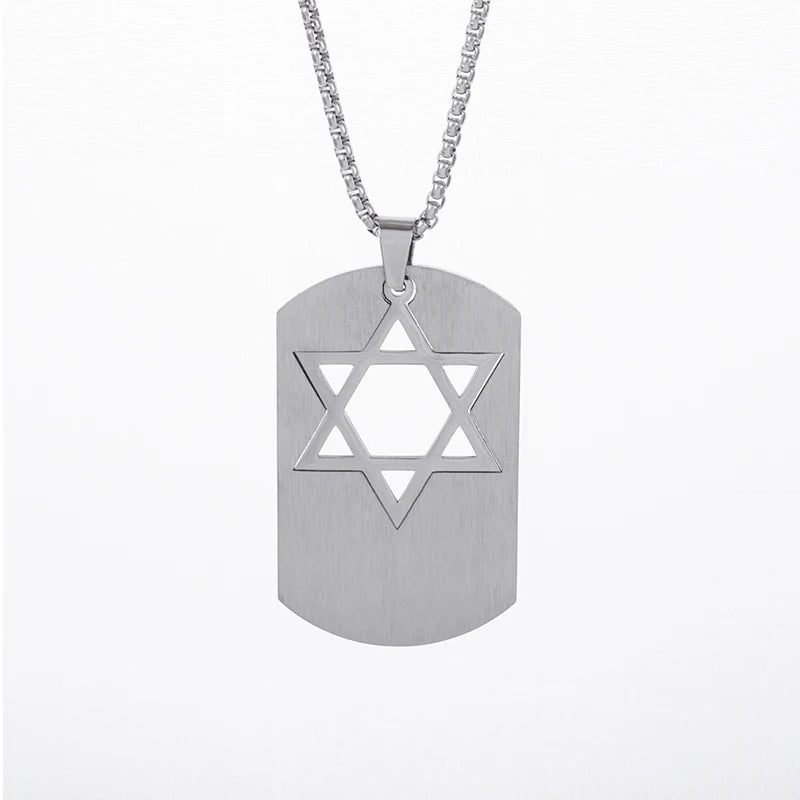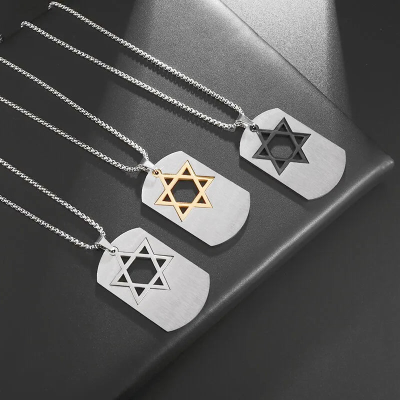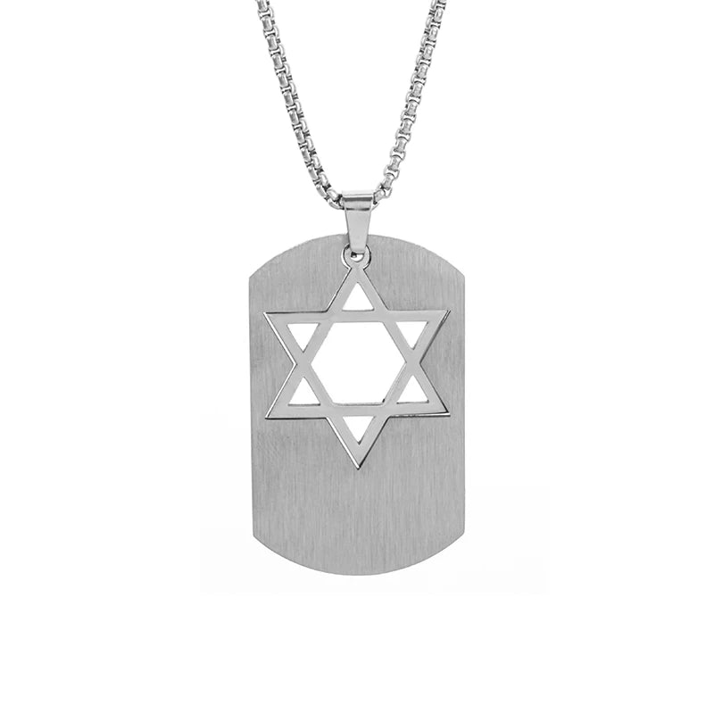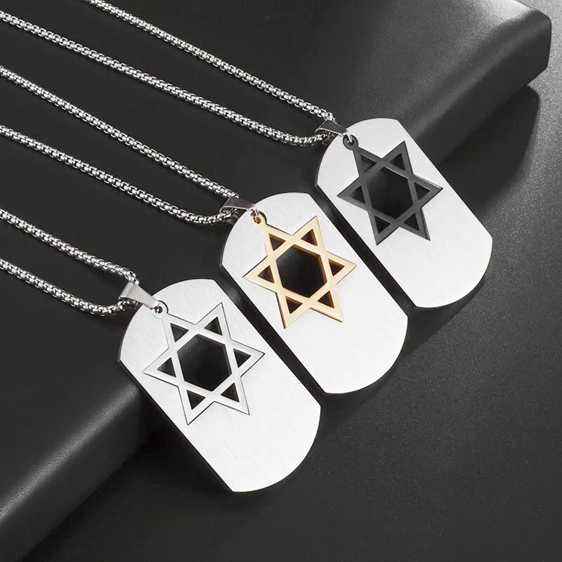 Star of David Necklace Stainless Steel Geometric Hexagon Cutout Dog Tag Pendant Judaism Men\\\\\\\'s Char...