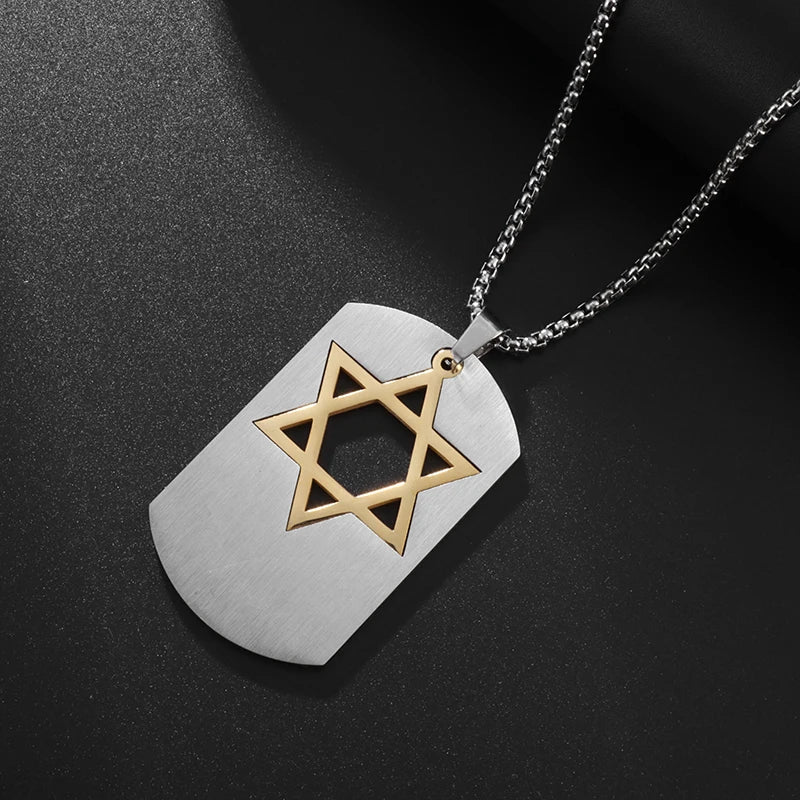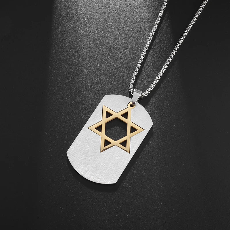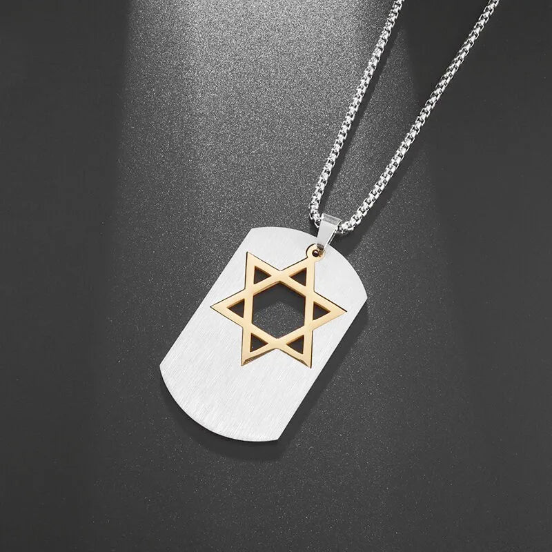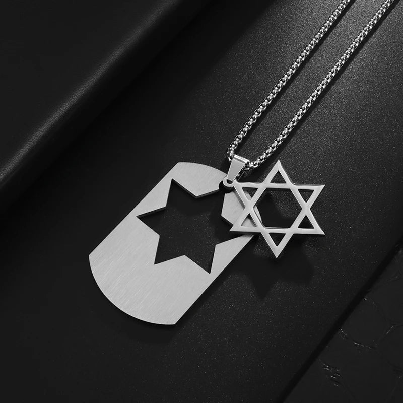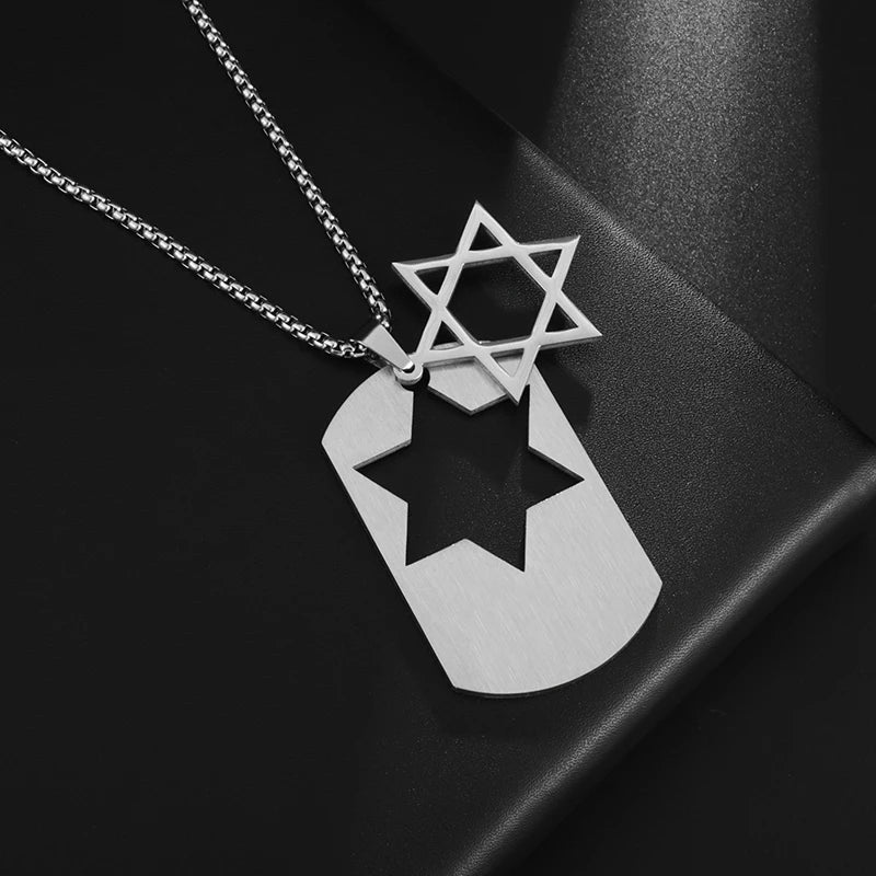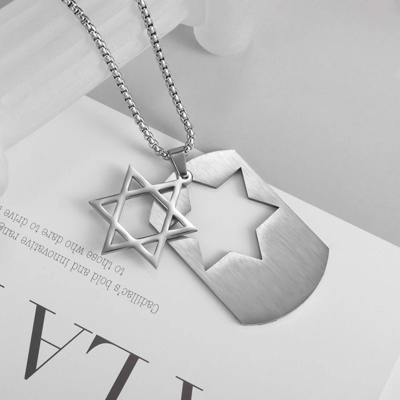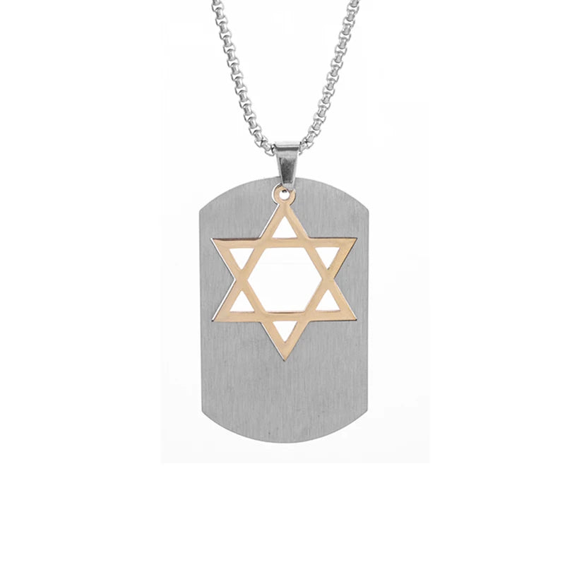 Star of David Necklace Stainless Steel Geometric Hexagon Cutout Dog Tag Pendant Judaism Men\\\\\\\'s Char...