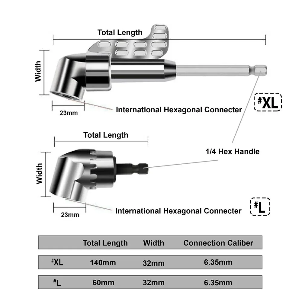 - Can be connected to electric drill and manual wrench, being a spanner so as to extend to where drill can't 90 degrees to operate to twist screws and nuts, easy to use.