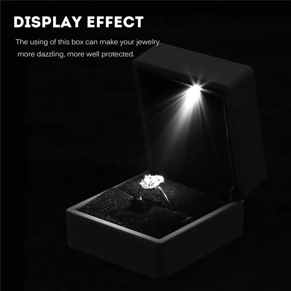 1.ILLUMINATED RING: box is equipped with a small LED light that emits a white light when box is opened, which makes jewelry more dazzling and shows a bright ring at any time