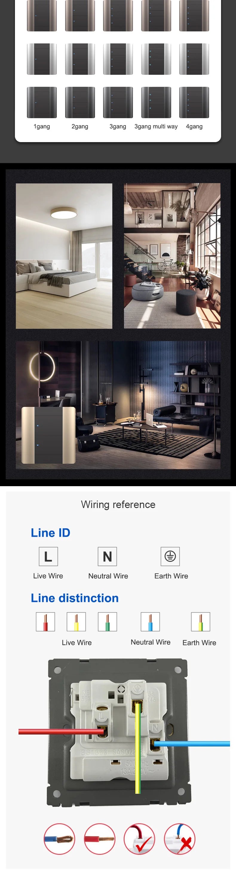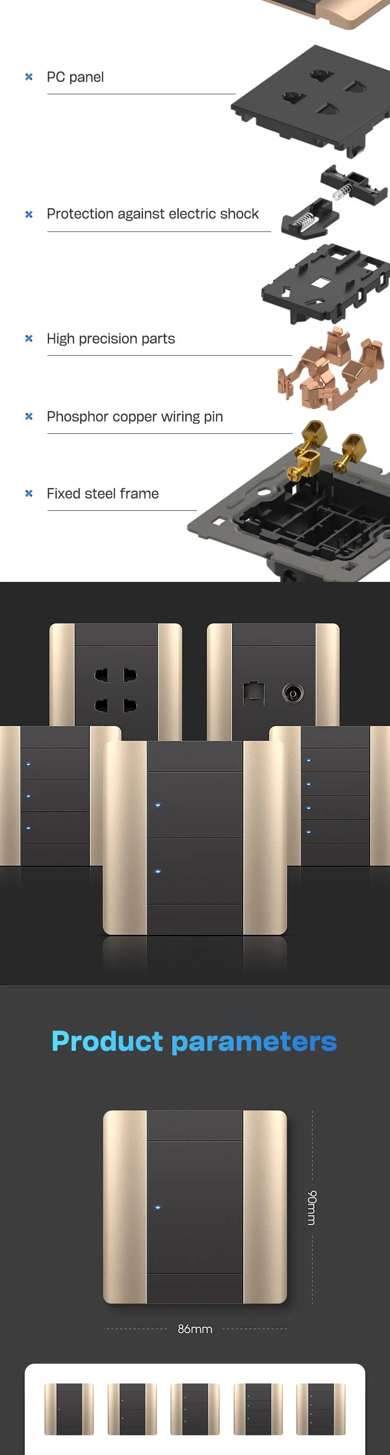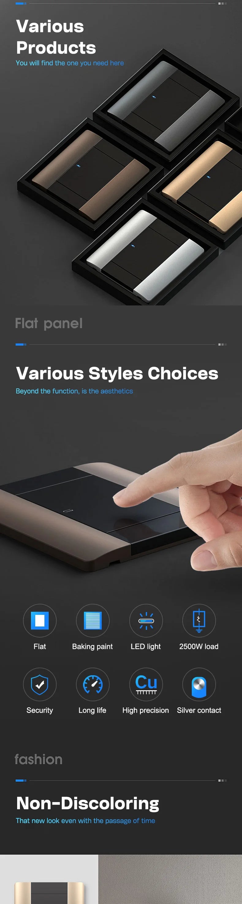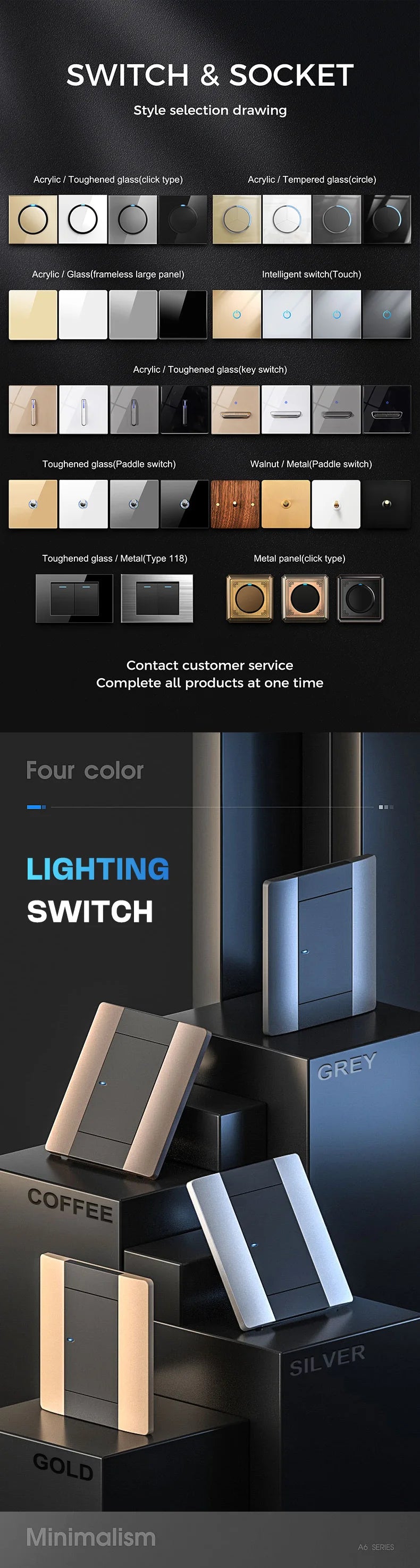 Yinka Plastic Panel Home Self resetting Wall Light Switch Two color Splicing 1 2
