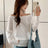 Korean Mix Color Long Sleeve Shirts Women Crew Neck Pullo...