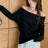 Slim Fit Long Sleeve T Shirts Women Sexy Hollow Out Pullo...