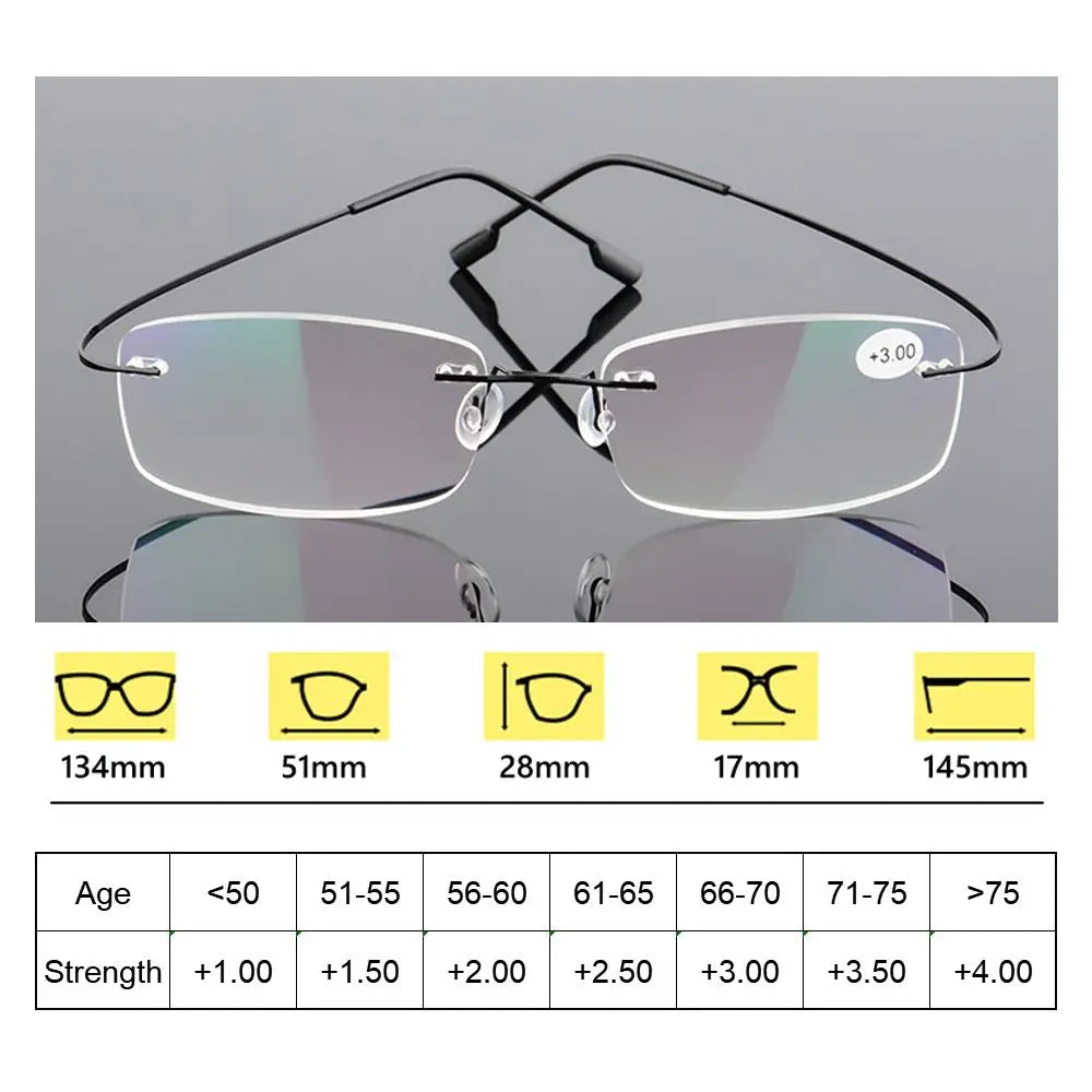 Ultralight TR90 Memory Titanium Rimless Reading Glasses Men&Women Presbyopic Eyeglasses +1.0 +1.5 +2.0 to...
