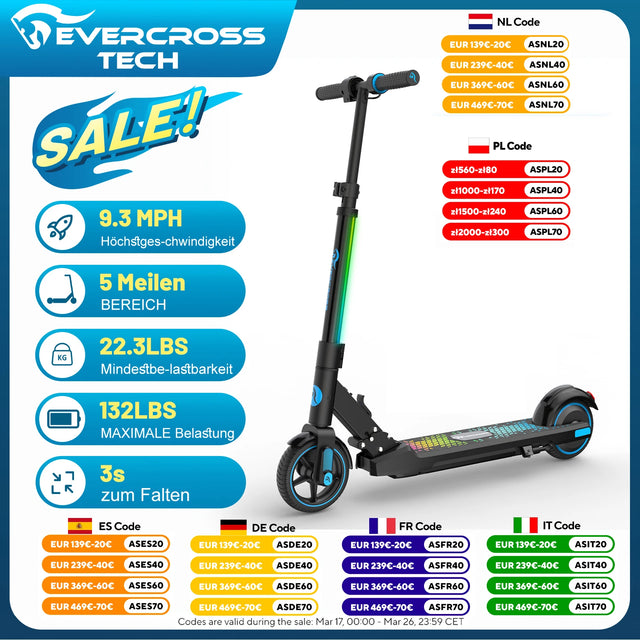 EVERCROSS TECH EV06C children's electric scooters, foldable, up to 15 KM/H, LED screen, colorful Lights