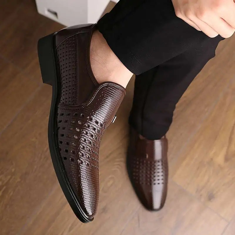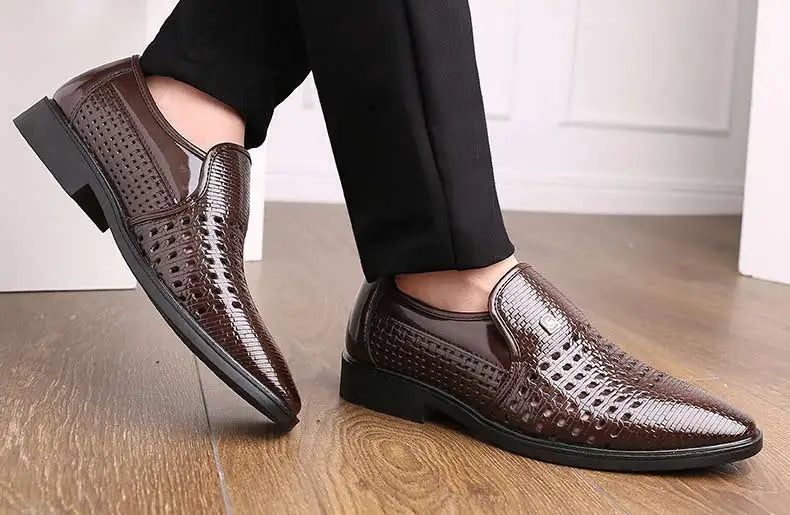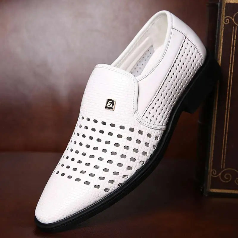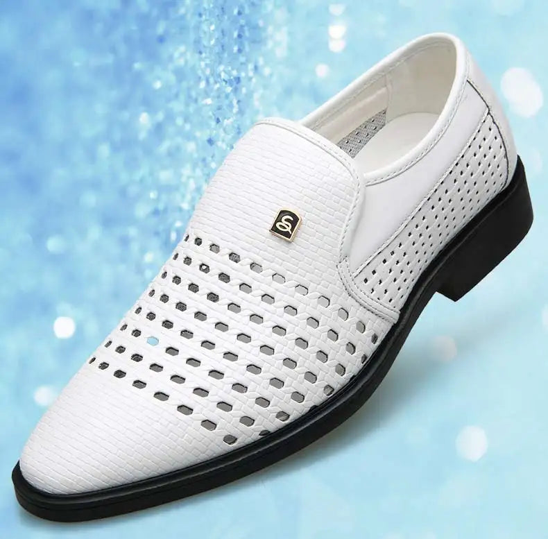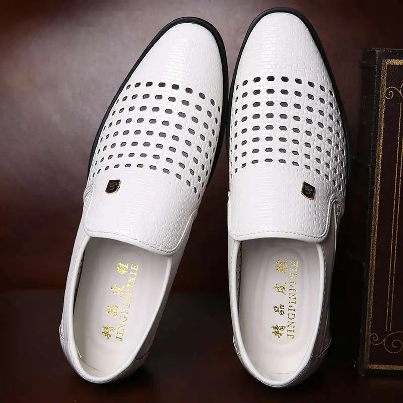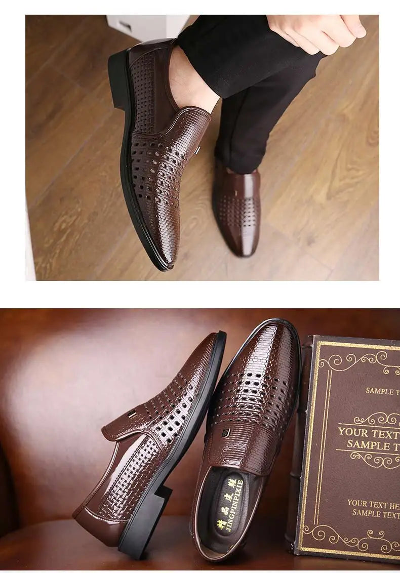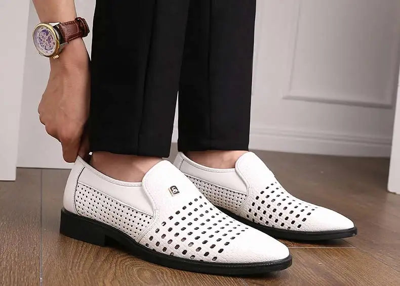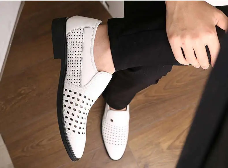 Holes Summer Men s Shoes Soft Leather Formal Shoes Men Flats Pointed Toe Soci...