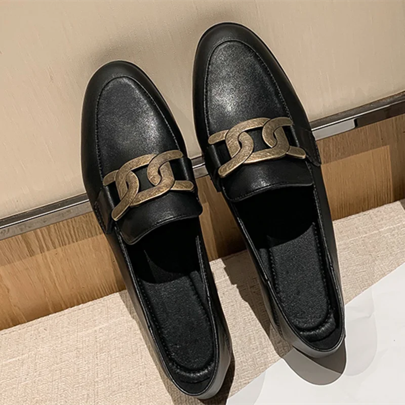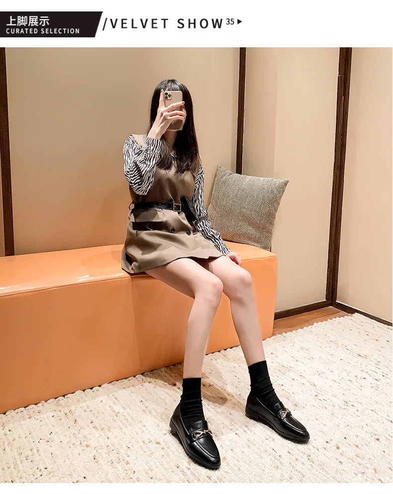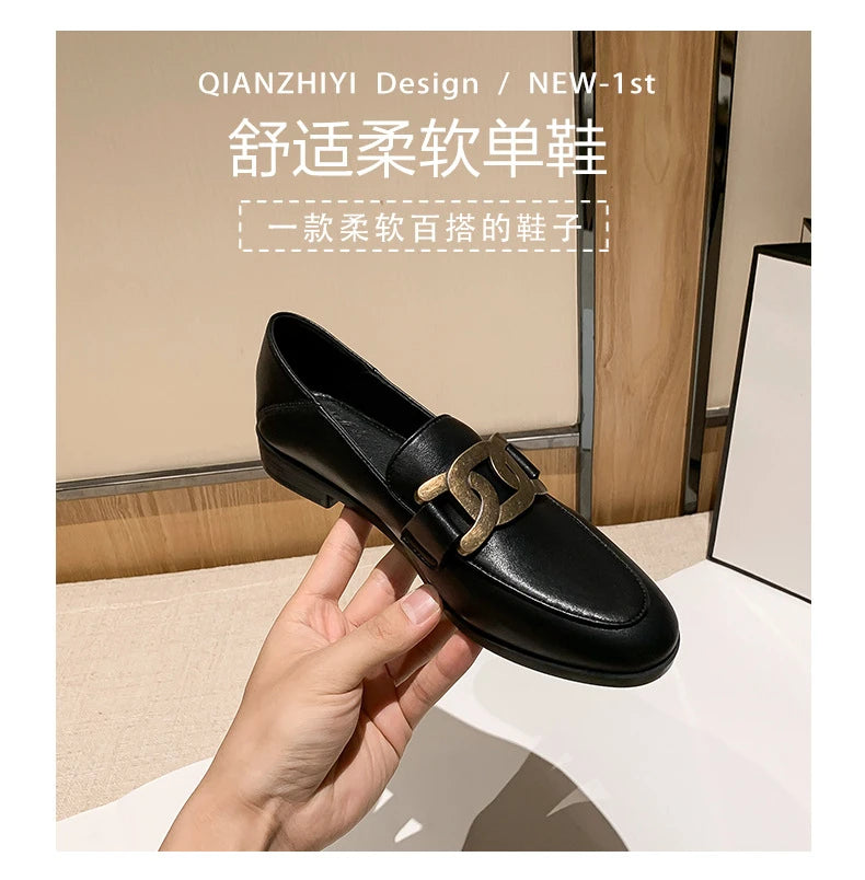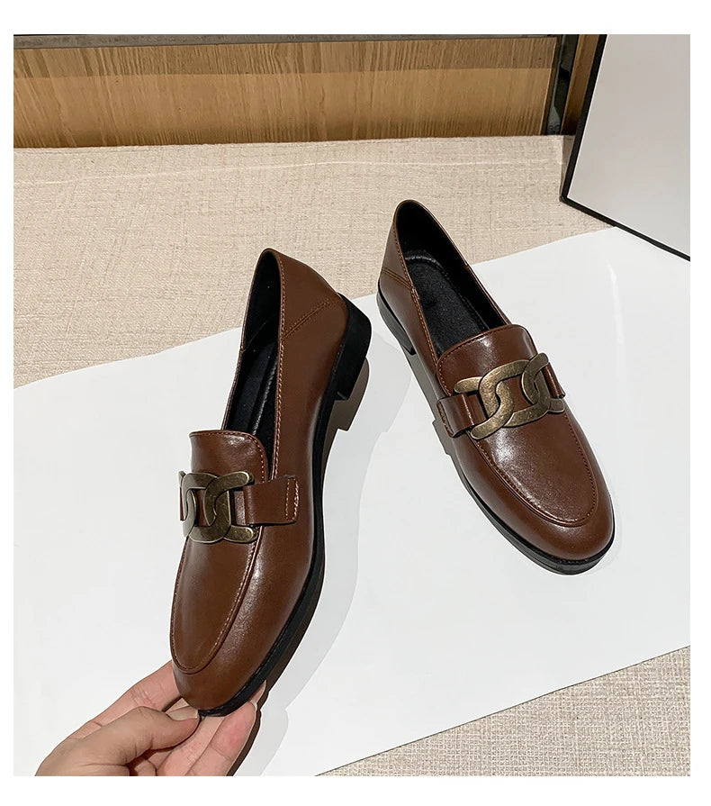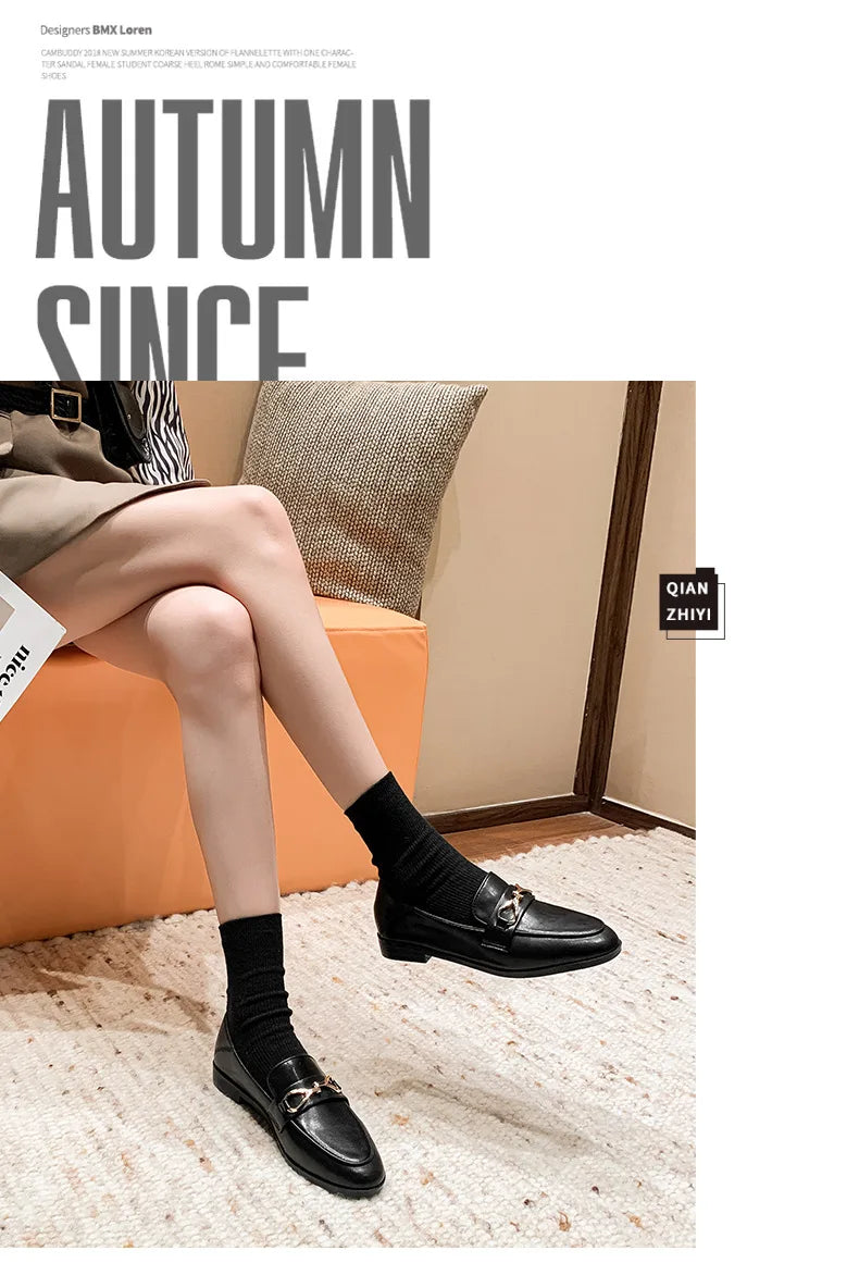 leather loafers, flat soled women s shoes, student shoes, English style women...