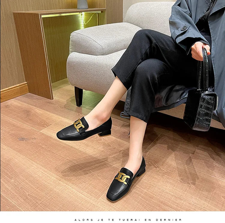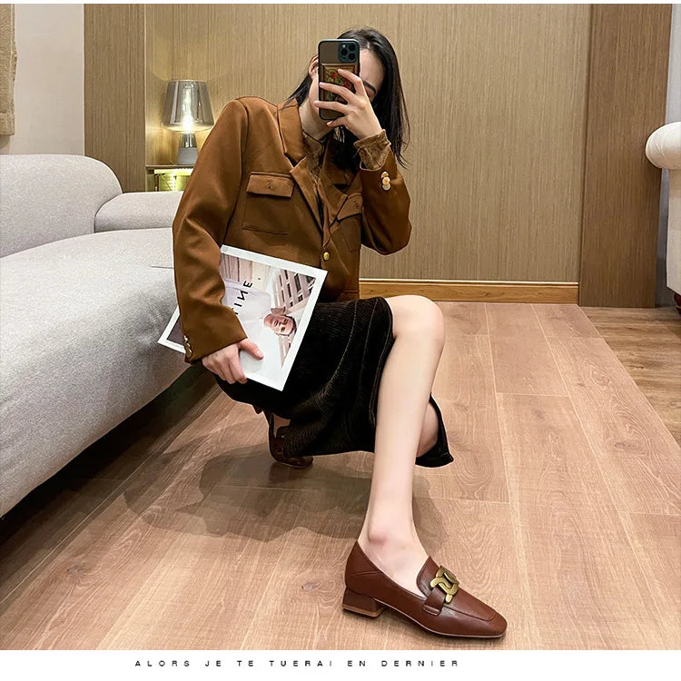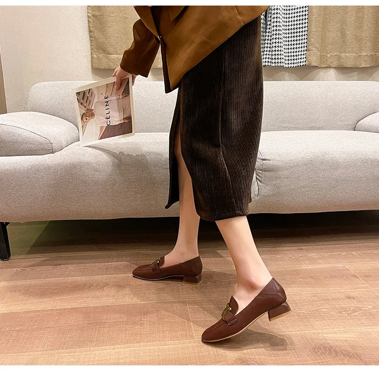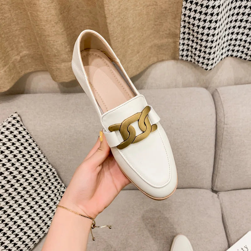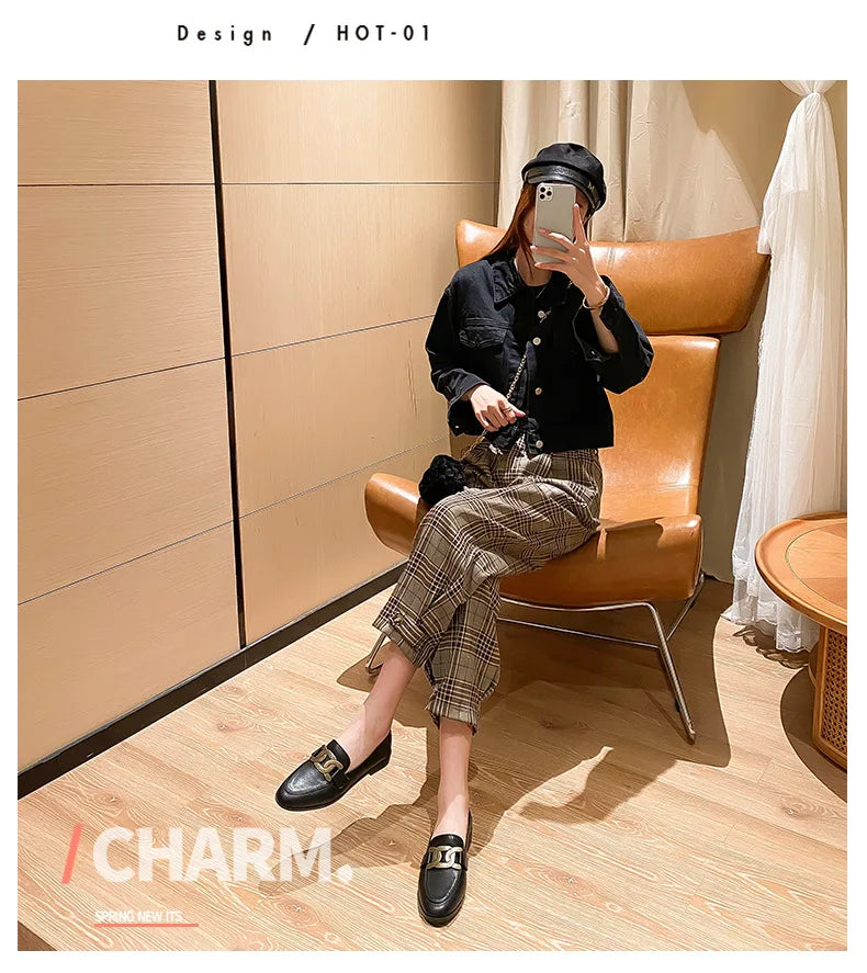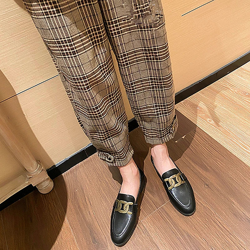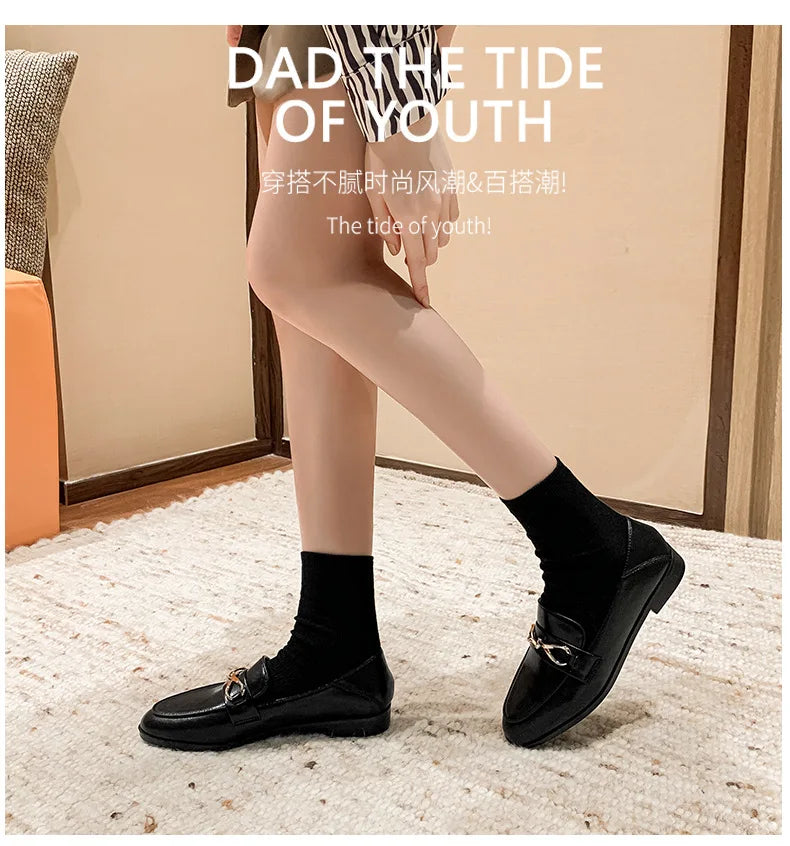 leather loafers, flat soled women s shoes, student shoes, English style women...