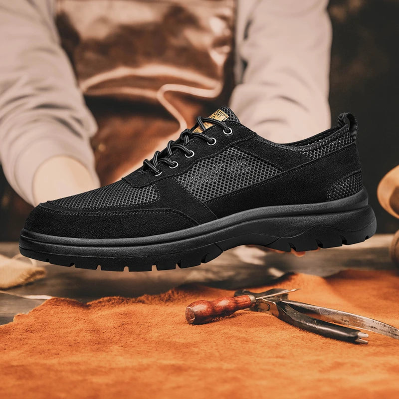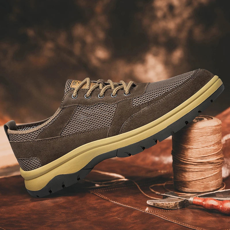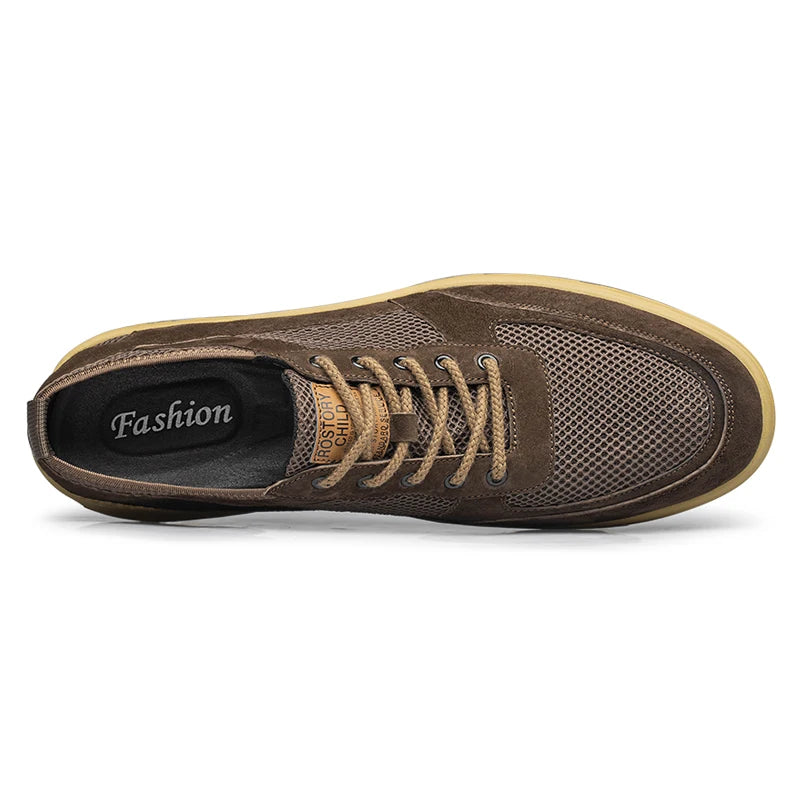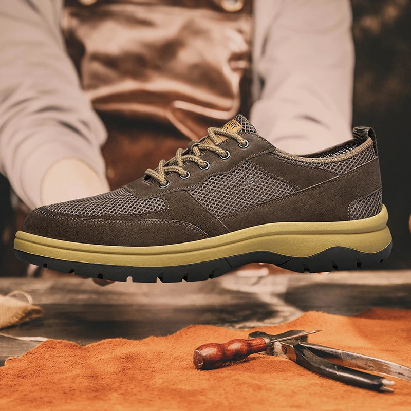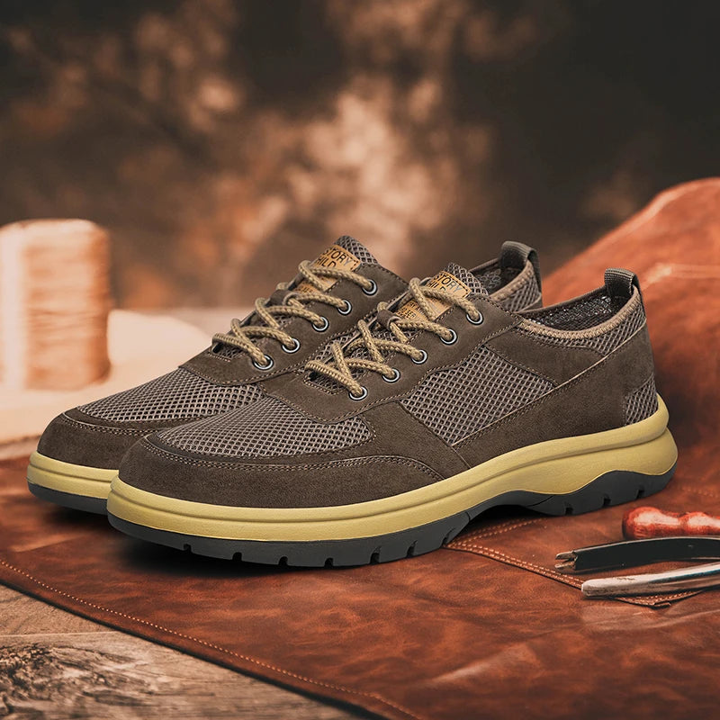 Handcrafted Men s Leather +mesh Shoes breathable summer autumn Lace Up Casual...