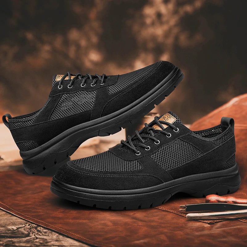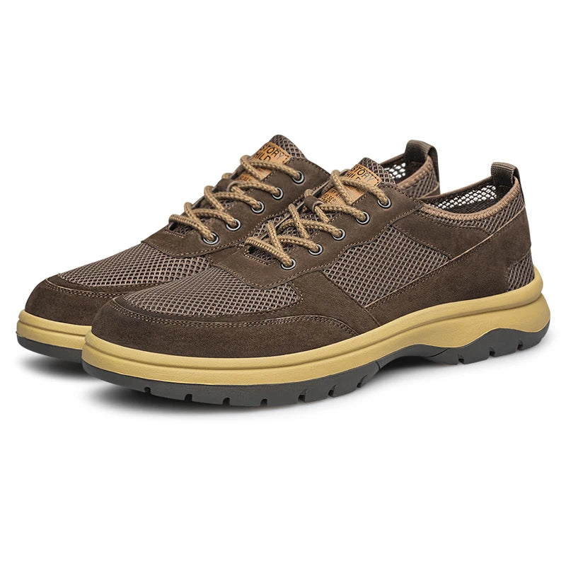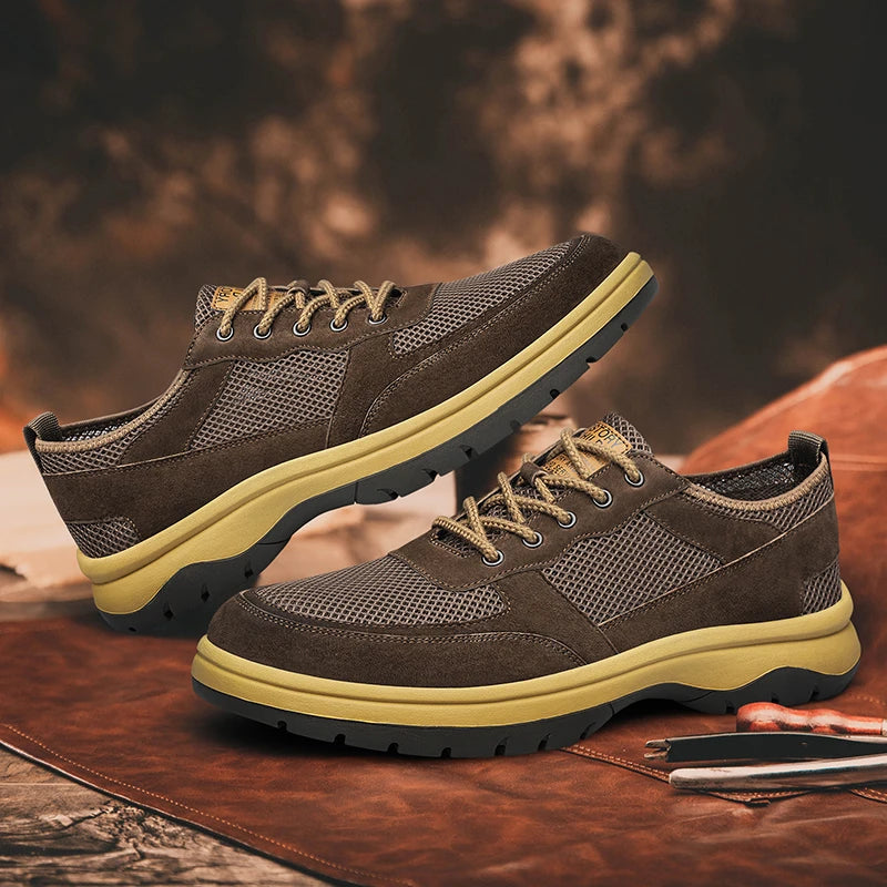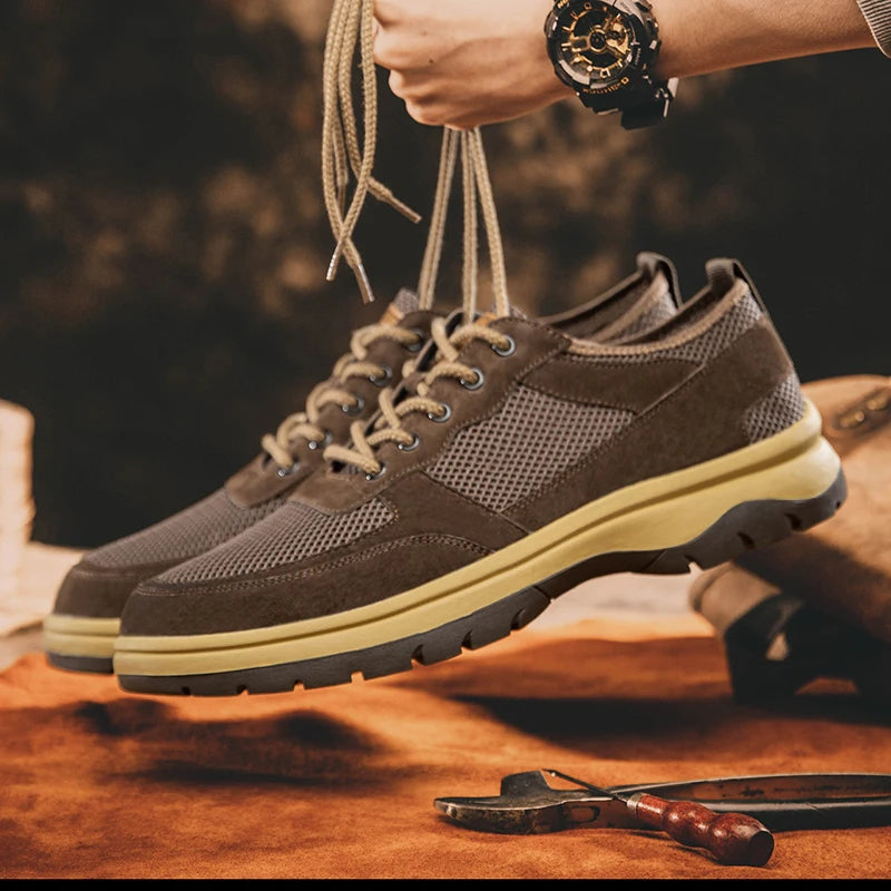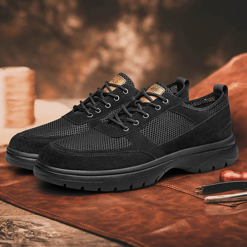 Handcrafted Men s Leather +mesh Shoes breathable summer autumn Lace Up Casual...