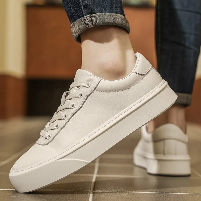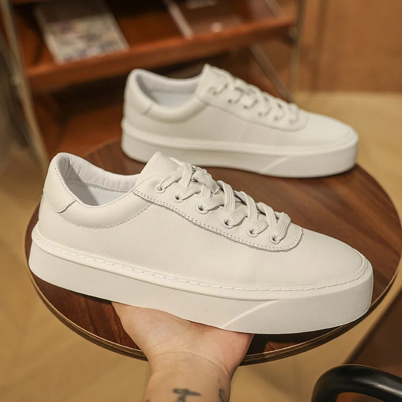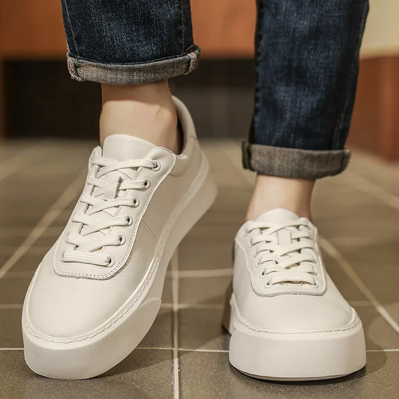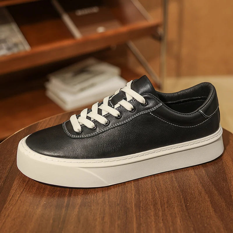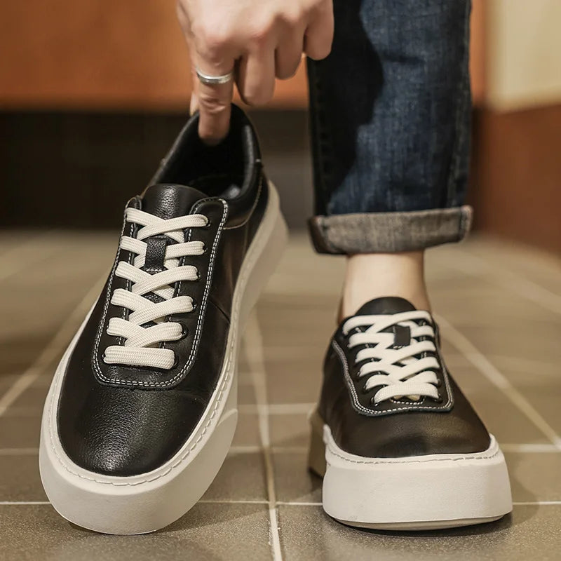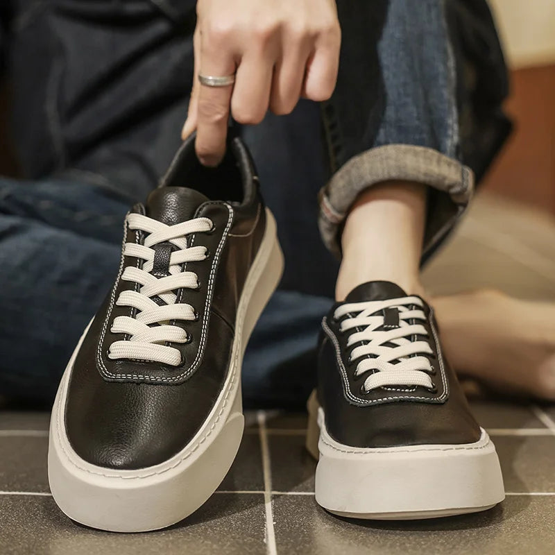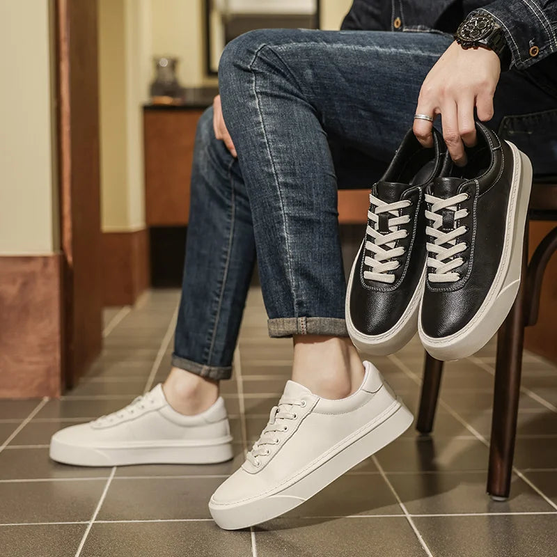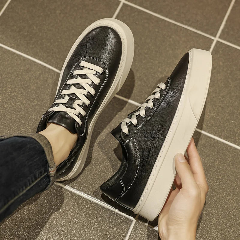 Mens Casual Leather Sneakers Lace Up FlatS Sole Shoes Insole for Daily Walkin...
