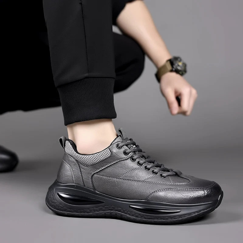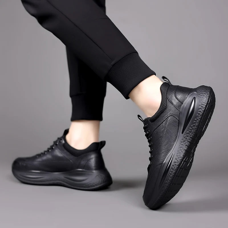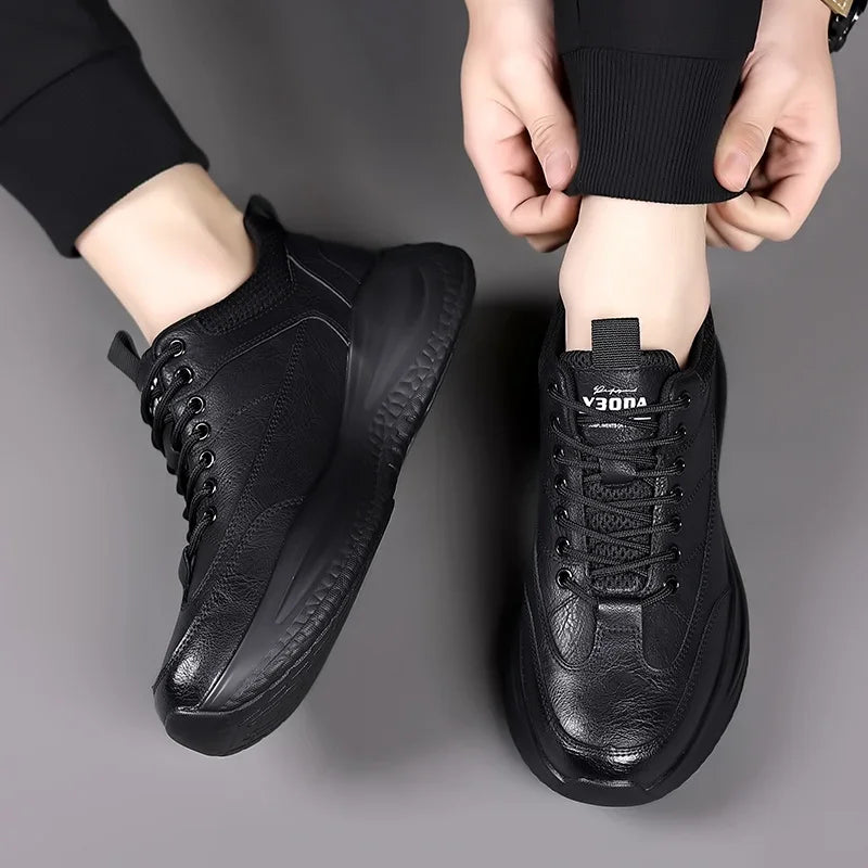 Men s Casual Shoes lace up black Trend Wild Fashion Men Shoes Thick soled Sho...