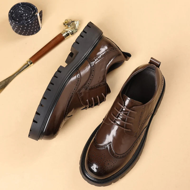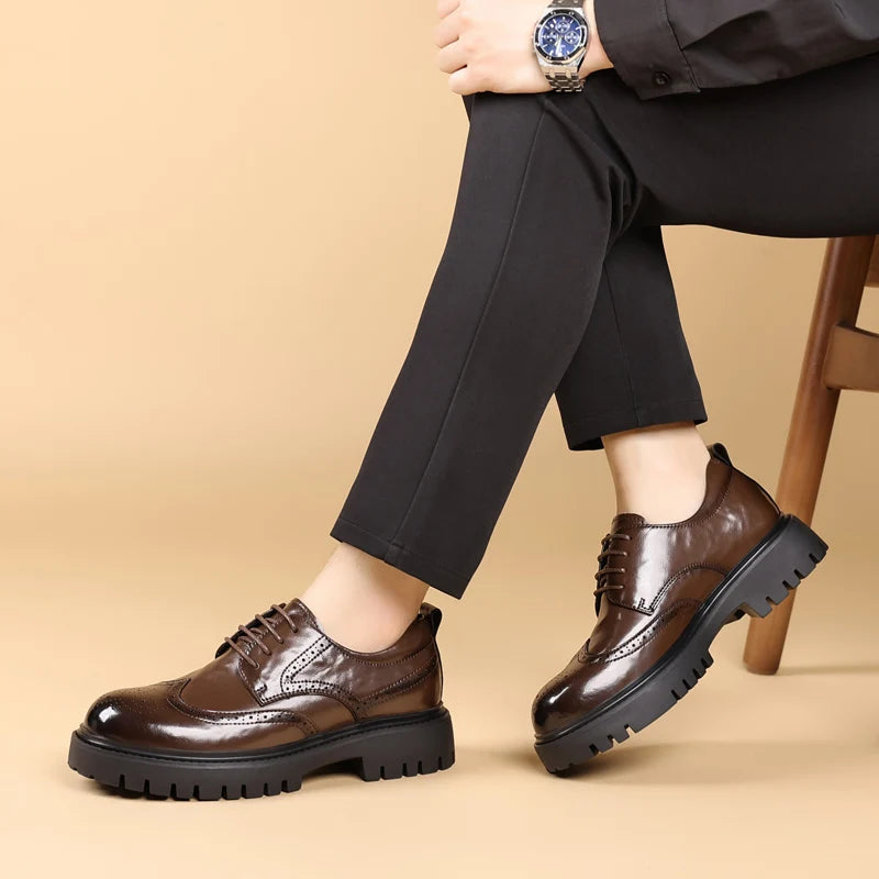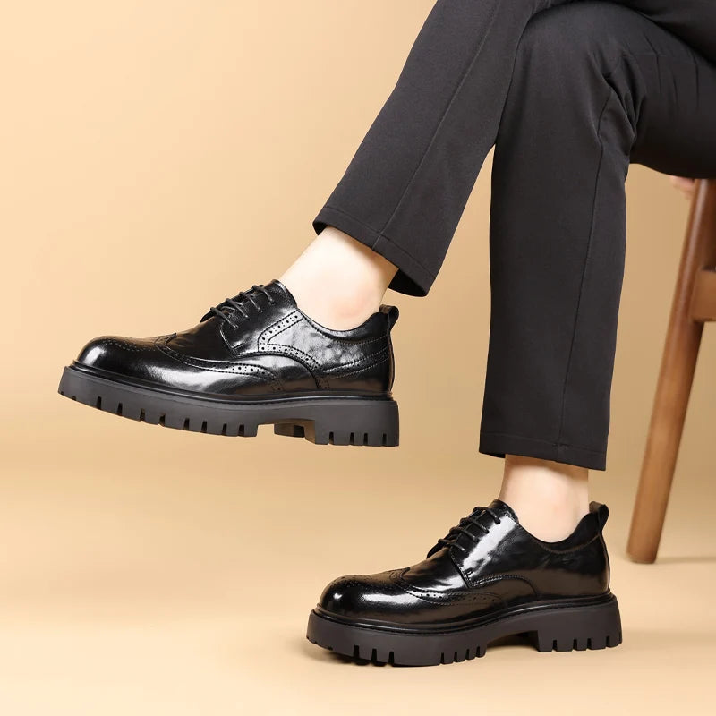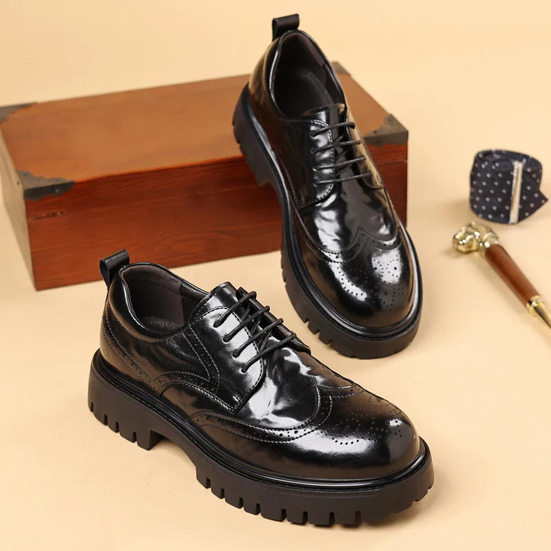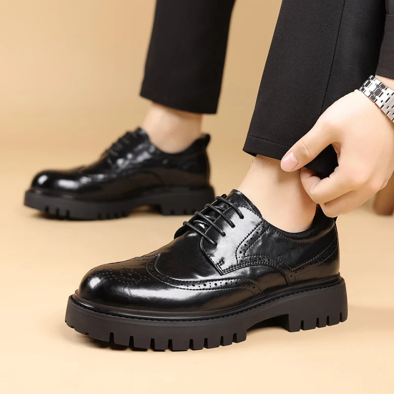 Men s leather oxfords lace up Business dress Footwear with Reinforced Stitchi...