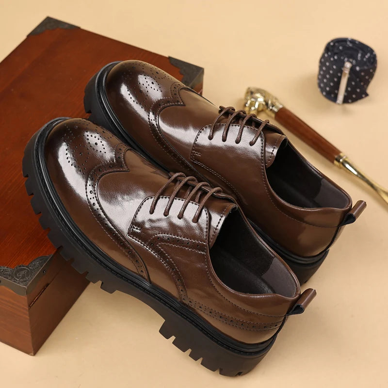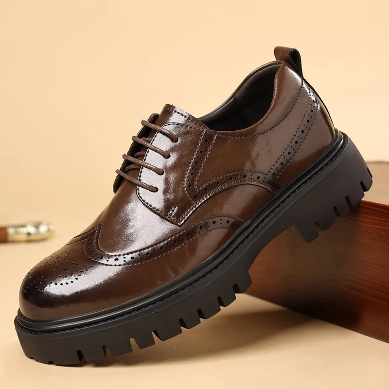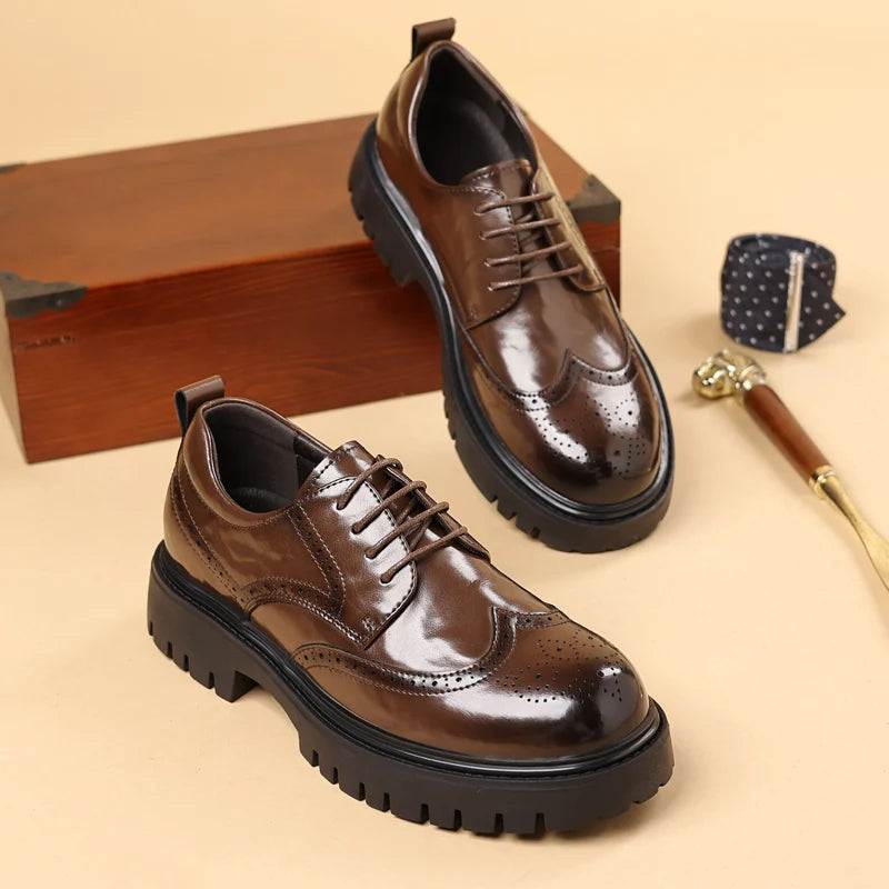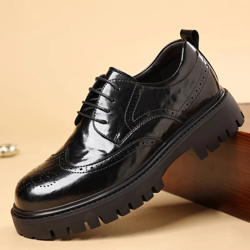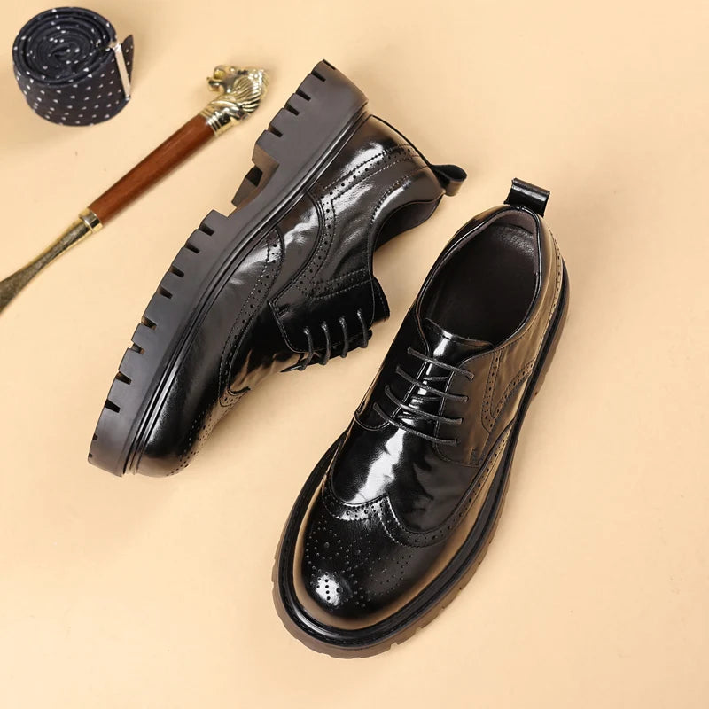 Men s leather oxfords lace up Business dress Footwear with Reinforced Stitchi...
