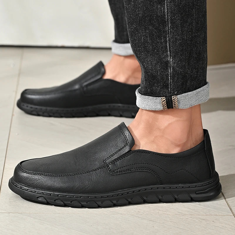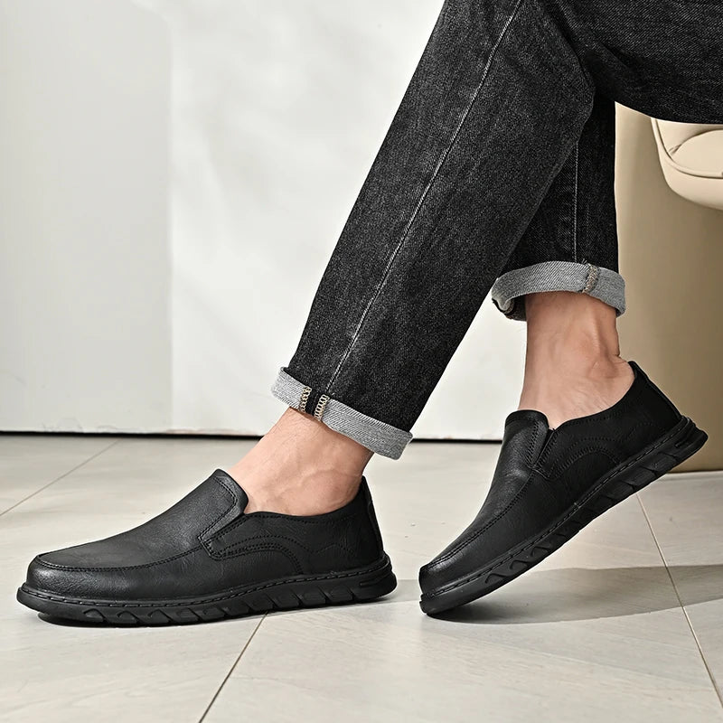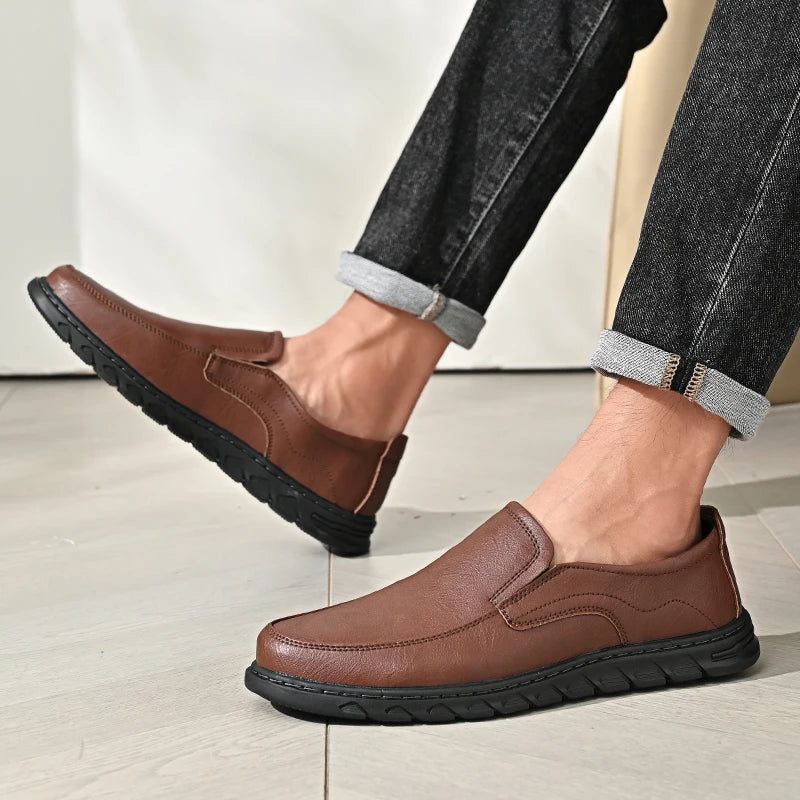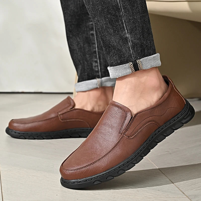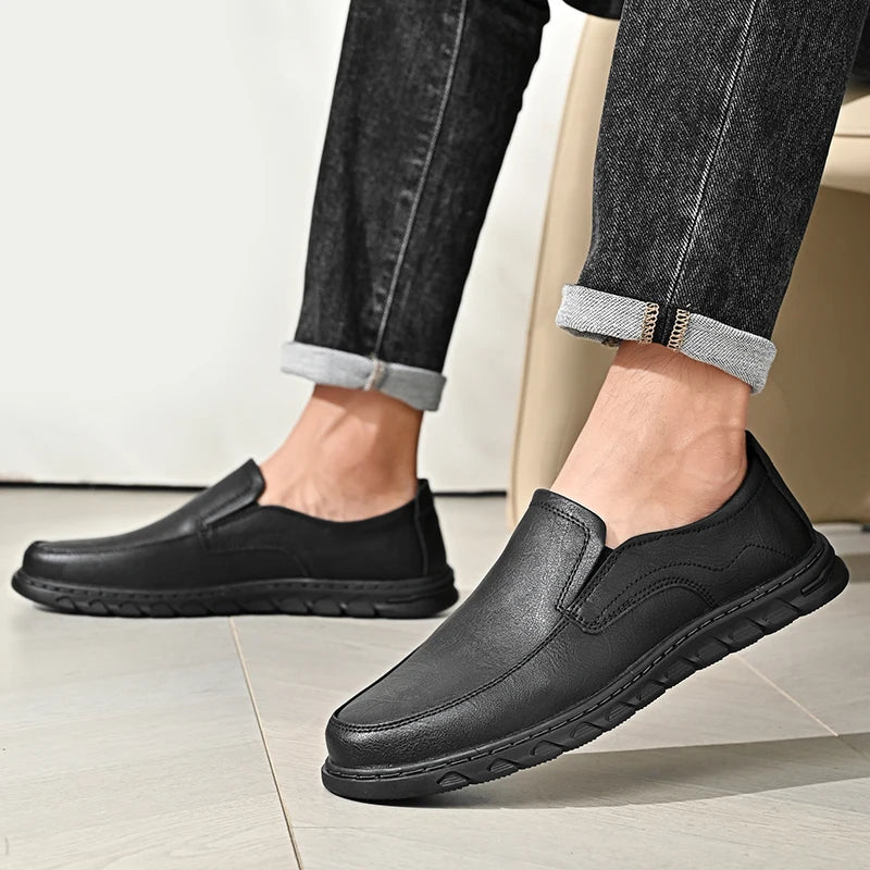 Men s Luxury Leather Loafers Slip On Style Office Shoes Breathable Insole Wid...