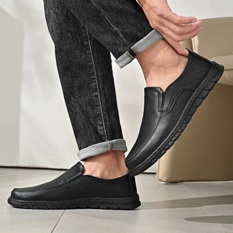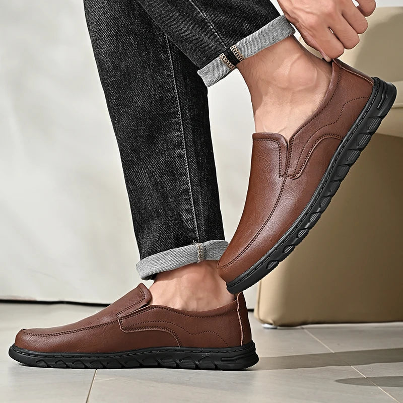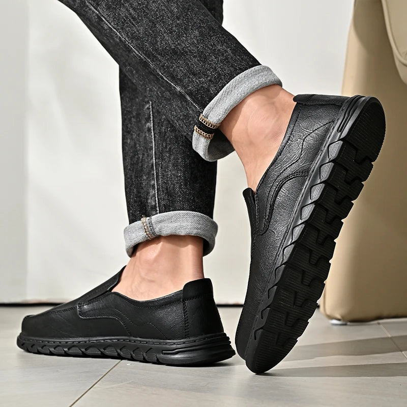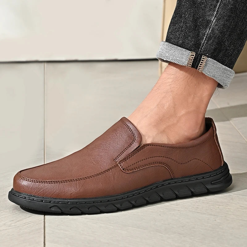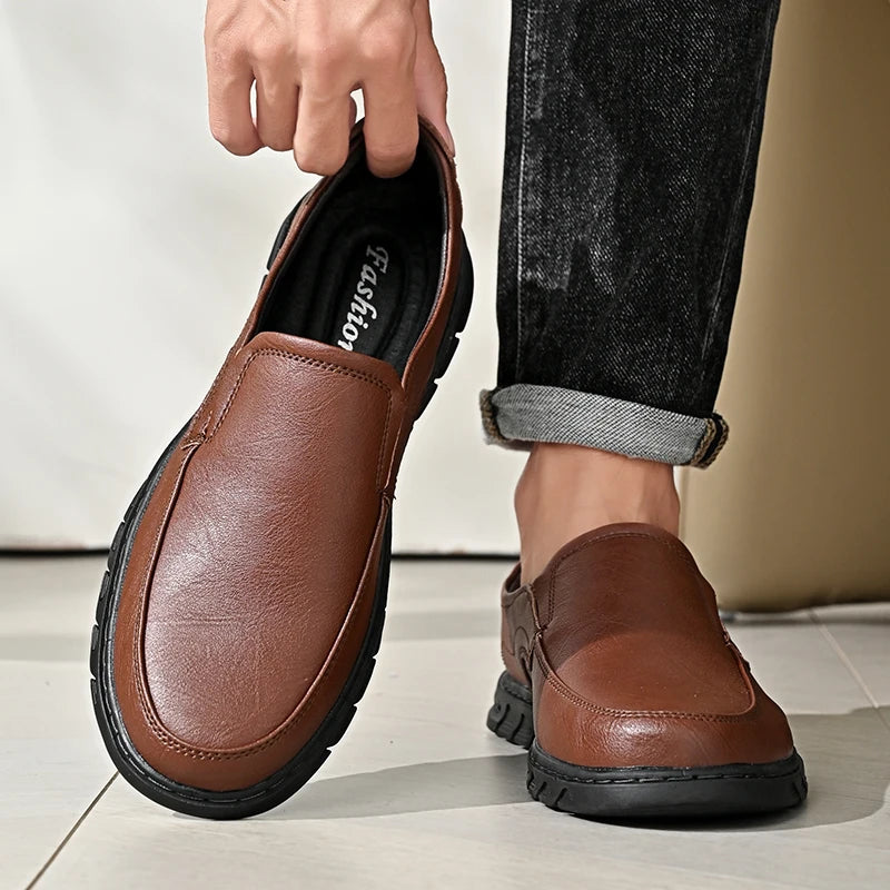 Men s Luxury Leather Loafers Slip On Style Office Shoes Breathable Insole Wid...