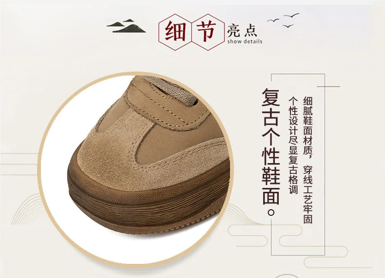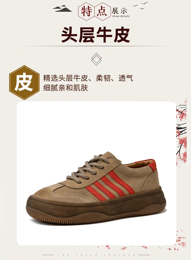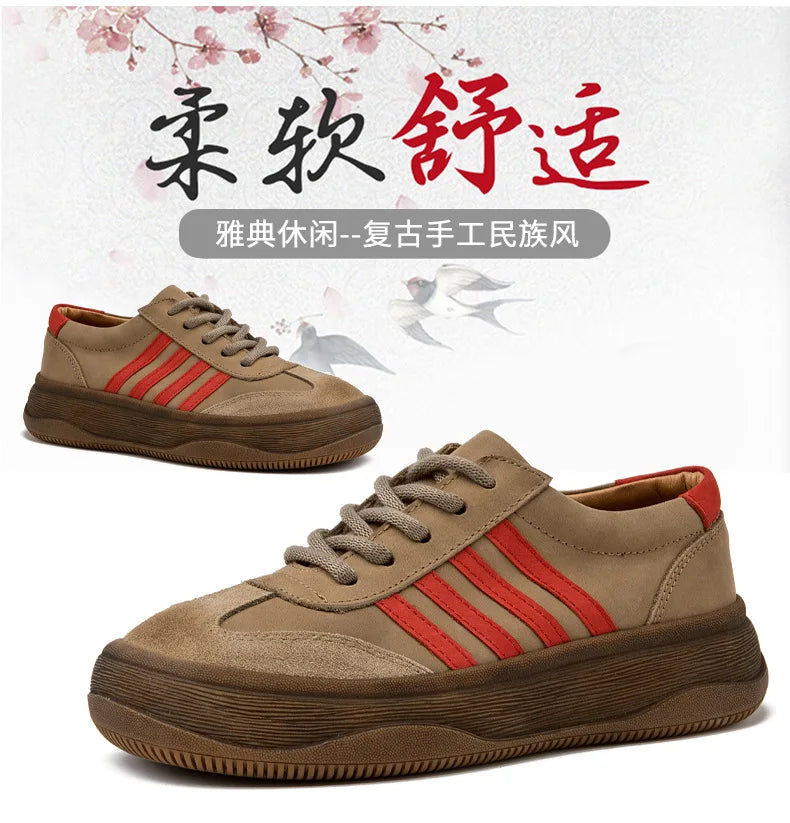Retro Nostalgic Style Cowhide Women s Shoes All Leather Casual shoes sneakers
